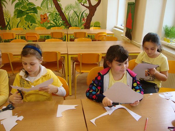V naší škole jsme si chtěli zpestřit čekání na velikonoční svátky a tak jsme vyhlásili od 21. března „BAREVNÝ TÝDEN“. Děti mohly každý den přijít do školy oblečení v barvě daného dne. V pondělí se škola zabarvila domodra. Nosili jsme modrá trička, mikiny, prostě kdo co měl. Úterý se zabarvilo dožluta a středa byla dočervena. Na přípravě barevného týdne se podílely paní učitelka Musilová a Hýblová. Každý den měly pro děti připravené obálky s velikonočními úkoly, které byly ukryté na různých místech školy a děti si je musely každé ráno najít. V duchu Velikonoc si žáci vyzdobili také svoje třídy i celou školu, všude jsme mohli narazit na pestrobarevné slepice, kohouty, zajíčky, velikonoční kraslice a jiné symboly těchto jarních svátků.