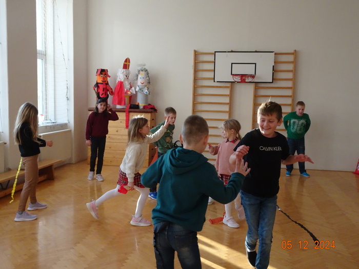 Na mikulášské odpoledne si děti ve školní družině užily legraci při plnění čertovských úkolů v tělocvičně. Skákaly v pytlech, přeskakovaly „oheň“ a plnily další čertovské úkoly. Po splnění úkolů si ve školní družině vyrobily krásné čertíky.