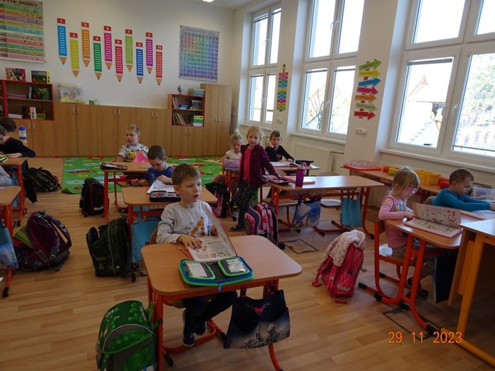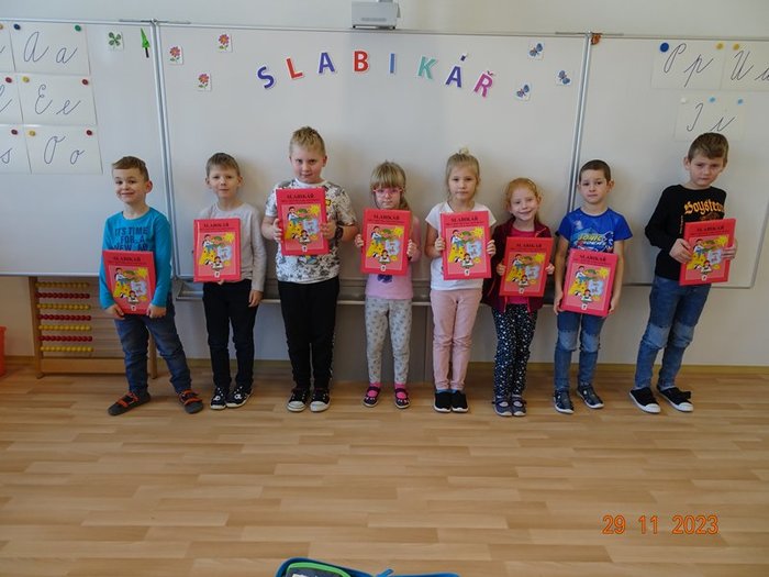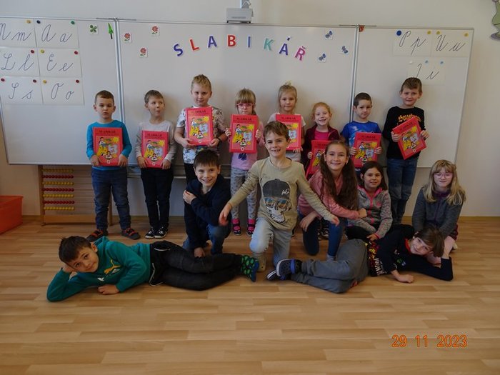 Konečně se naši prvňáčci dočkali tolik očekávaného dne, kdy dostanou nový Slabikář. Do školy chodí teprve tři měsíce, ale za tu krátkou dobu se toho hodně naučili. Počítají do 6, znají 9 písmenek, čtou slabiky, slova i první věty, učí se psát psacím písmem. Ve středu 29. listopadu 2023 na ně čekalo ve škole překvapení. Uspořádali jsme pro ně Slavnost slabikáře. Odměnou za splnění čtenářských úkolů jim byl nový Slabikář a sladká odměna. Ať se vám žáčci daří a jsou z vás dobří čtenáři.