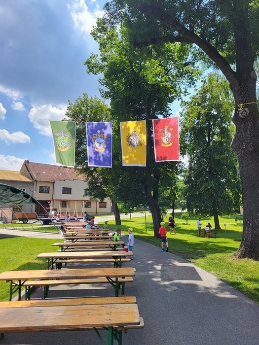 V sobotu 29. června 2024 připravili členové SRPŠ při naší škole Dětský den ve stylu Harryho Pottera. Pro děti byla připravena řada úkolů s potterovskou tematikou, skákací hrad, nafukovací bludiště a dovádění v pěně. Zajištěno bylo vynikající občerstvení - řízečky, gulášek, maso na rožni a sladké palačinky. Celé odpoledne se velmi vydařilo. Děkujeme všem, kteří se na přípravě krásné akce podíleli.