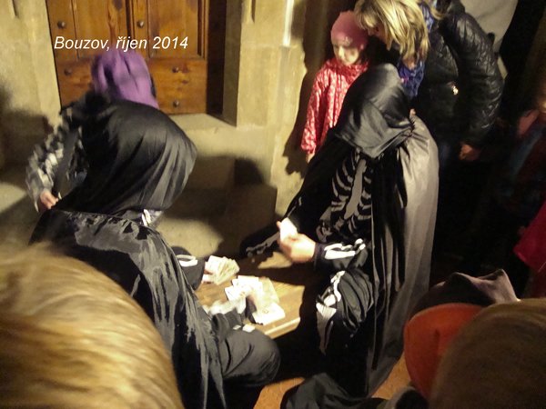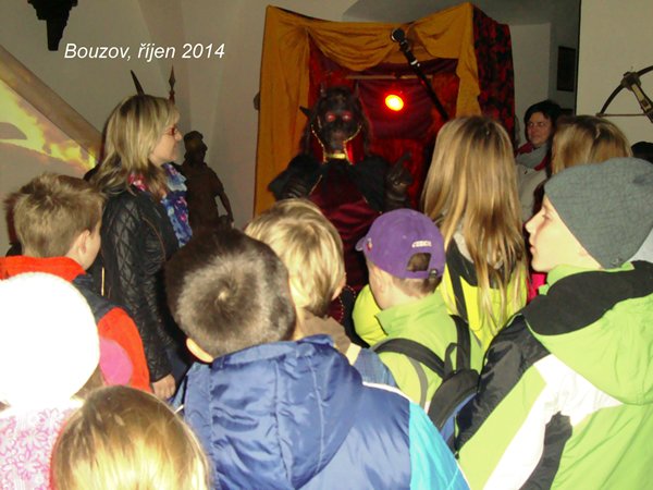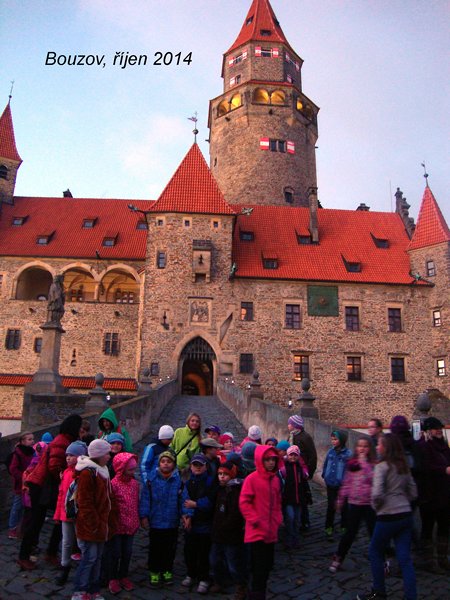 Když se setmí, všechno vypadá jinak. Mohli jsme se o tom přesvědčit na vlastní oči v pátek 24. října 2014, když jsme se vydali na večerní prohlídku hradu Bouzov. Potemnělé středověké zdi byly lehce osvětlené a hradní sály ožily nadpřirozenými bytostmi, které nám dávaly různé hádanky. Na cestě hradem jsme potkali čarodějnici, která připravovala své lektvary, bezhlavého rytíře, vodníka, černou a bílou dámu, paní z obrazu, která čekala na své vysvobození, upíra, kostlivce, dva bláznivé vědce, kteří nás vystrašili velkým pavoukem. Na závěr jsme navštívili peklo s čertem a jeho pomocníky. Nezvykle pojatá hradní prohlídka se nám moc líbila a báli jsme se jen maličko.