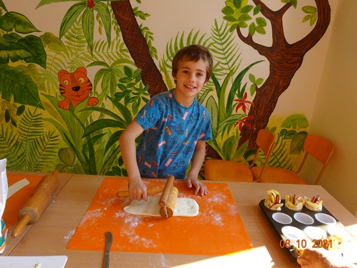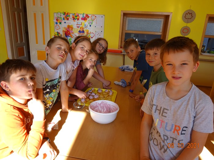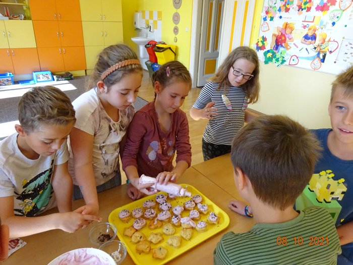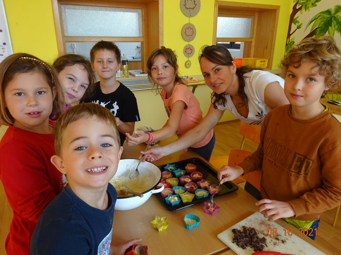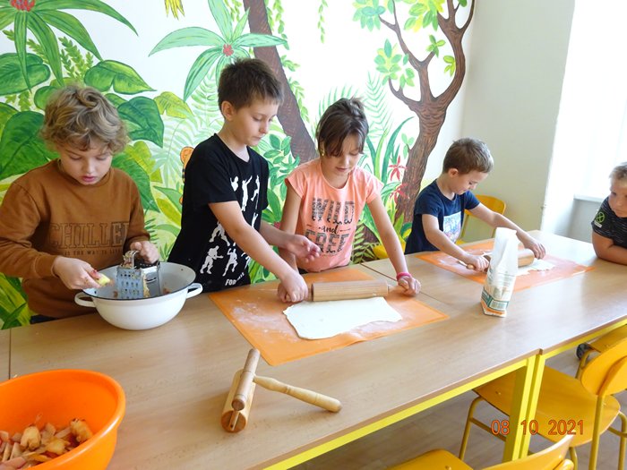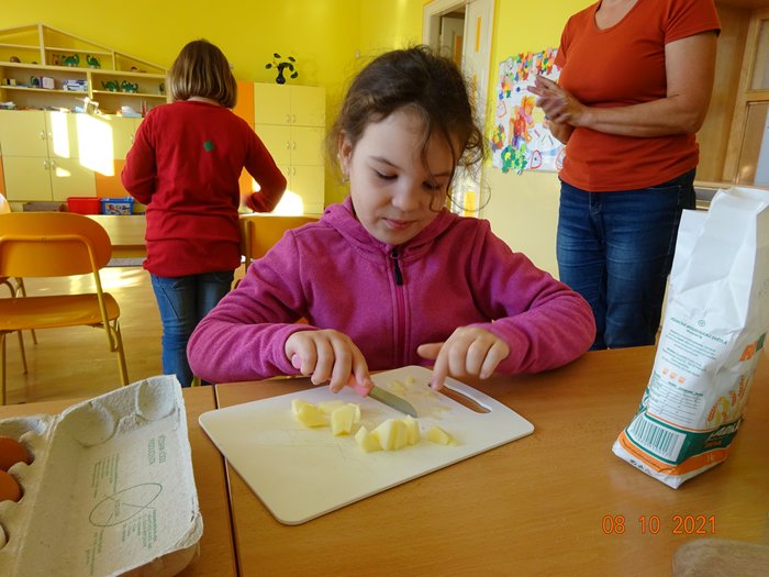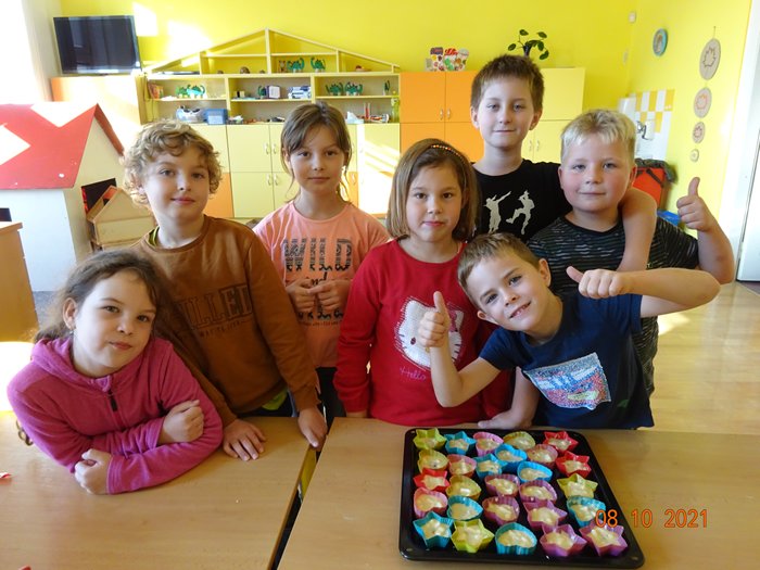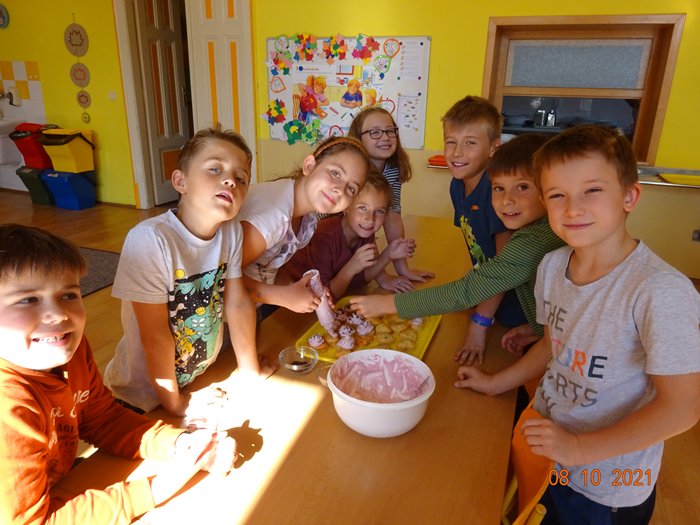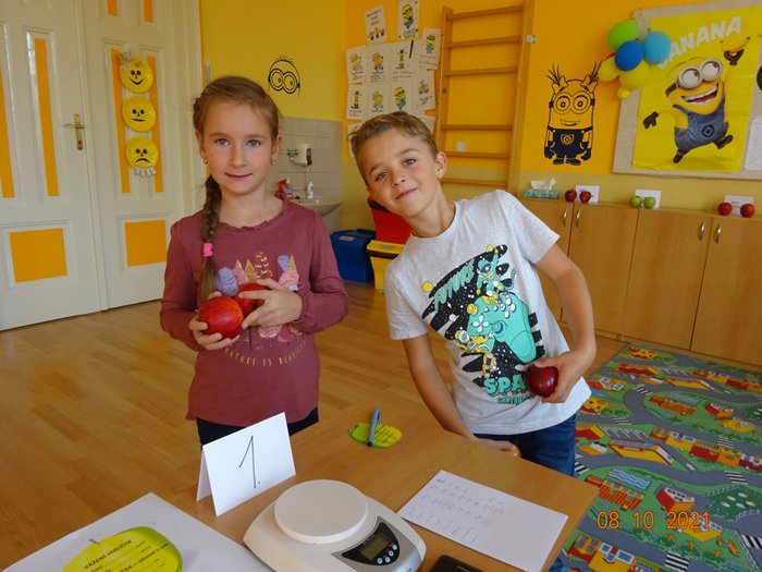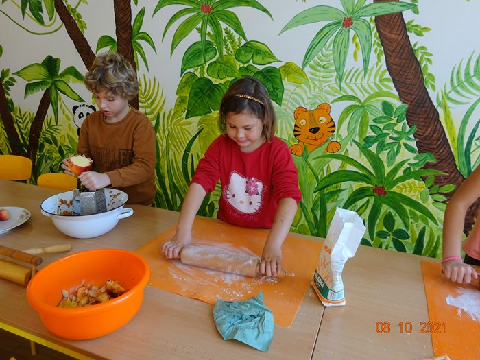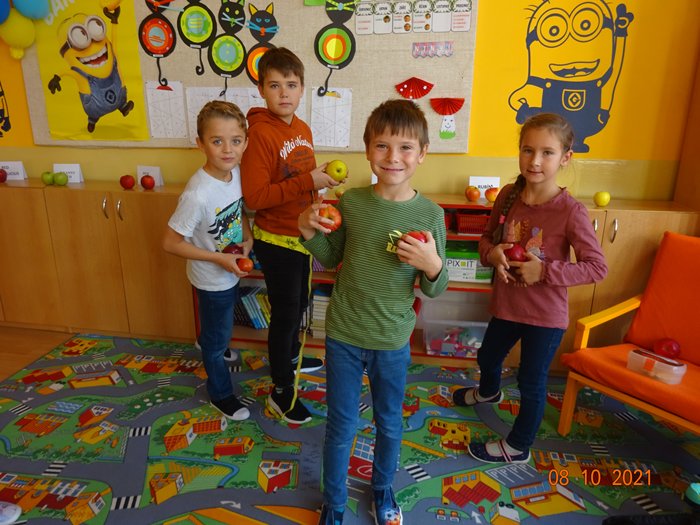 Na 1. stanovišti jsme měřili a vážili největší a nejmenší jablko, seznámili jsme se s různými odrůdami jabloní, s jejich pěstováním a využitím. Skládali jsme puzzle, vyhledávali informace a hádali hádanky. Na 2. stanovišti jsme malovali a lepili jablíčka a na 3. stanovišti jsme si vyzkoušeli upéct z jablíček různé dobroty – štrúdl, muffiny a jablečné růžičky.