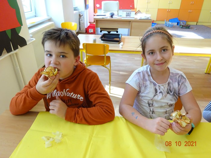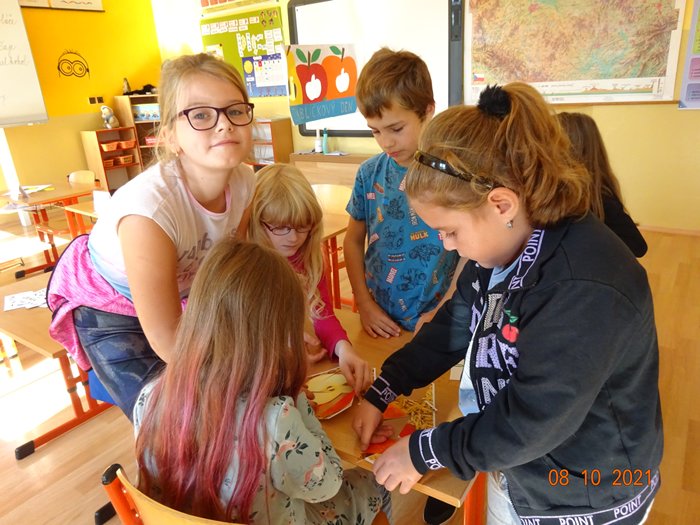V pátek 8. října 2021 se celou naší školou linula nádherná vůně. Konal se totiž tradiční Jablíčkový den. Děti se hned ráno rozdělily do tří skupin, které se během dopoledne vystřídaly na třech stanovištích.