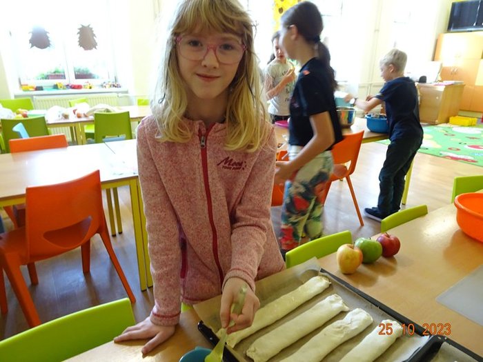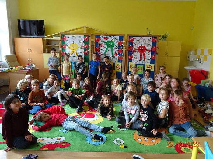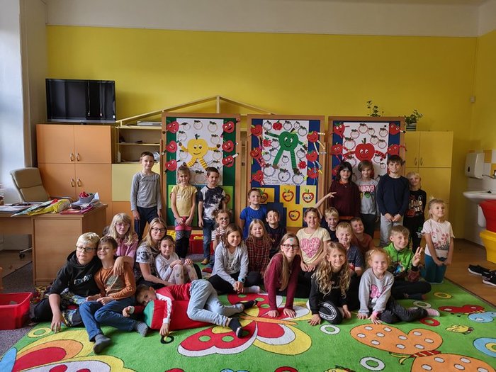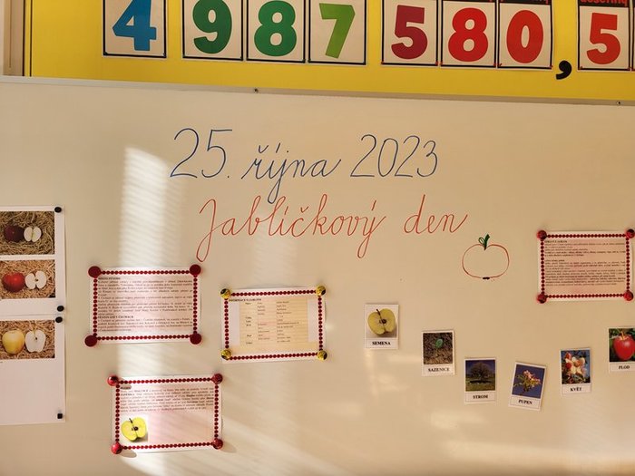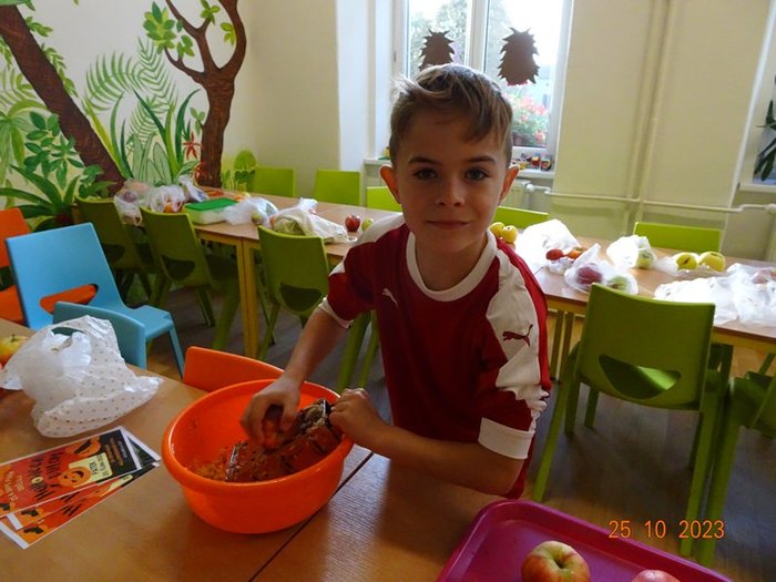 Ve středu 25. října 2023 se opět celou naší školou linula jablíčková vůně. Konal se totiž další tradiční Jablíčkový den. Děti se hned ráno rozdělily do tří skupin – červené, modré a žluté, které se během dopoledne vystřídaly na třech stanovištích.