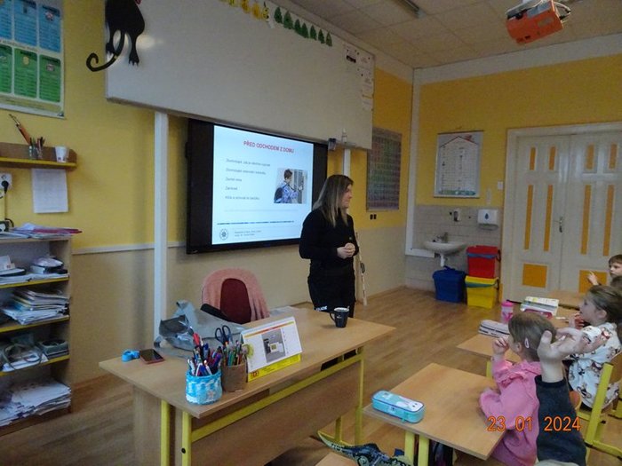 V úterý 23. ledna 2024 přijela do naší školy příslušnice Policie ČR Z. Slabá, která měla pro děti připravené dva preventivní projekty. Pro žáky 1. a 2. ročníku Tvoje cesta v dopravě, kdy si popovídali o tom, jak se bezpečně chovat doma a ve škole, zejména pak chování venku a cestou do školy. Pro žáky 3. – 5. ročníku program Tvoje cesta on-linem, kdy si povídali o tom, jak se chovat na internetu bezpečně a o závislostech na mobilech a počítačích. Program byl pro děti přínosný, my doufáme, že si děti uvědomily, jak se mají v on-line prostoru chovat a jaké nástrahy a nebezpečí jim tam mohou hrozit.