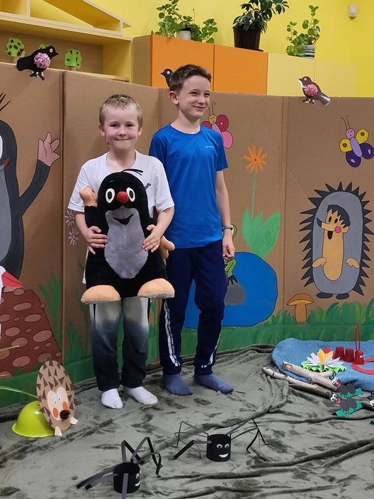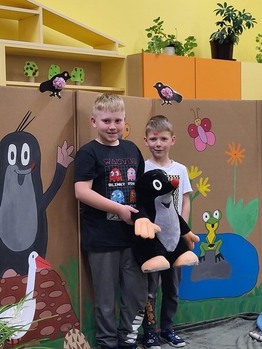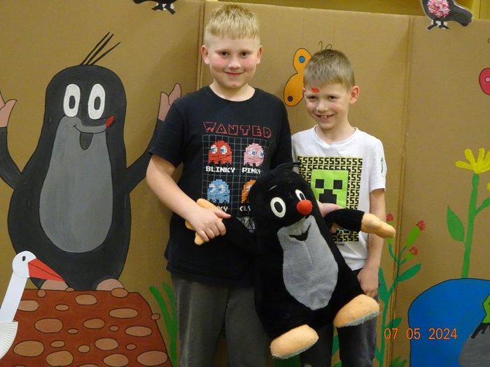 24. ročník pohádkové Noci s Andersenem proběhl oficiálně v pátek 22. dubna 2024. I naše škola se opět přihlásila na tuto dětmi oblíbenou akci, ale nocovali jsme v náhradním termínu v úterý 7. května. Už od 17.30 hodin přicházeli první zájemci do školy. Připravili si svoje místa na spaní a rozloučili se se svými rodiči. Zábava Andersenovy noci mohla začít. Pan Andersen nás letos nenavštívil, ale vyřídil pozdravy po paní ředitelce. Potom jsme se od paní asistentky dozvěděli mnoho informací o našem spisovateli Eduardu Petiškovi, který by se letos dožil 100 let a o malíři Zdeňku Milerovi. Oba společně vytvořili řadu knížek o krtečkovi. Jeho namalovaná postavička byla vstupenkou na letošní spaní ve škole.Paní asistentka připravila pro děti řadu úkolů, ve kterých se tato postavička objevila. Děti si poslechly část pohádky Jak krtek ke kalhotkám přišel, vyplňovaly pracovní listy, potom ze stejné knížky zástupci jednotlivých družstev postupně četli. Po občerstvení v podobě výborné pizzy děti vyráběly krtkovy kalhotky a pak následoval krtkův pětiboj. Děti poznávaly hudební nástroje, domalovávaly poloviny zvířátek, vymalovávaly obrázky, vyluštily bludiště, v tělocvičně hádaly obrysy zvířátek a hrály hry – káča, labyrint, dřevěné puzzle, házení na terč. Po setmění se vydaly na cestu večerní školou, kdy měly za úkol přesně spočítat, kolik se ve škole ukrývá krtečkových kamarádů. Občas se ozývaly strašidelné zvuky, ale všichni došli do cíle a správně spočítali krtečkovy kamarády. Pak jsme se už pomalu ukládali do pelíšků. Podívali jsme se na film, mladší děti brzy usnuly, ale starší vydržely být vzhůru docela dlouho. Ráno jsme se sbalili a po dobré snídani (maminky opět napekly výborné koláčky) jsme se vydali domů.