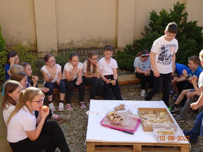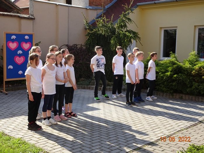 V pátek 6. května 2022 jsme pozvali maminky našich žáků do Kavárničky na školním dvoře, abychom oslavili svátek matek. Počasí nám ovšem nepřálo a tak jsme museli celou akci přesunout na úterý 10. května. Nejen některým maminkám, ale i nám to způsobilo celou řadu komplikací (dvakrát jsme pekli občerstvení). Nakonec to ale všechno dobře dopadlo. V úterý se počasí umoudřilo, na školním dvoře bylo příjemně a my doufáme, že děti udělaly svým vystoupením maminkám velkou radost.