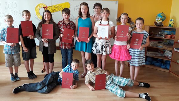 Poslední školní den není jen o známkách – každý si zaslouží pochvalu: za pěkné domácí úkoly, za vzorné chování, za snahu, za pomoc ostatním a také za to, že jste dobrými kamarády… Vaše snažení se cení a my z toho máme radost. Loučíme se s našimi páťáky a přejeme jim mnoho úspěchů na nových školách.