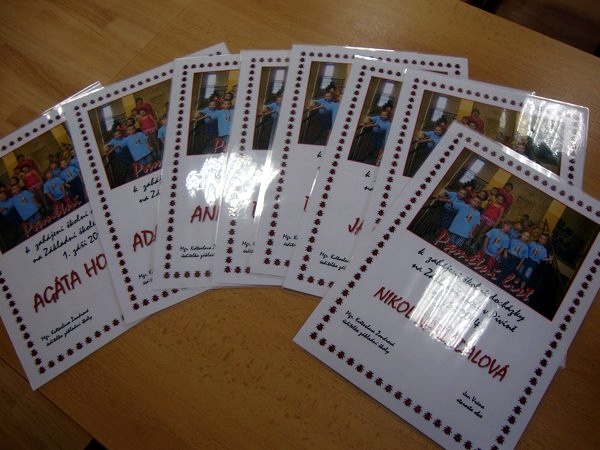 Agátko, Daliborku, Adámku, Davídku, Nikolko, Nelinko, Aničko a Honzíku, ať se vám v naší škole líbí a zažijete hodně úspěchů během školní docházky, rok plný pohody a ať máte mnoho elánu při získávání dalších vědomostí.