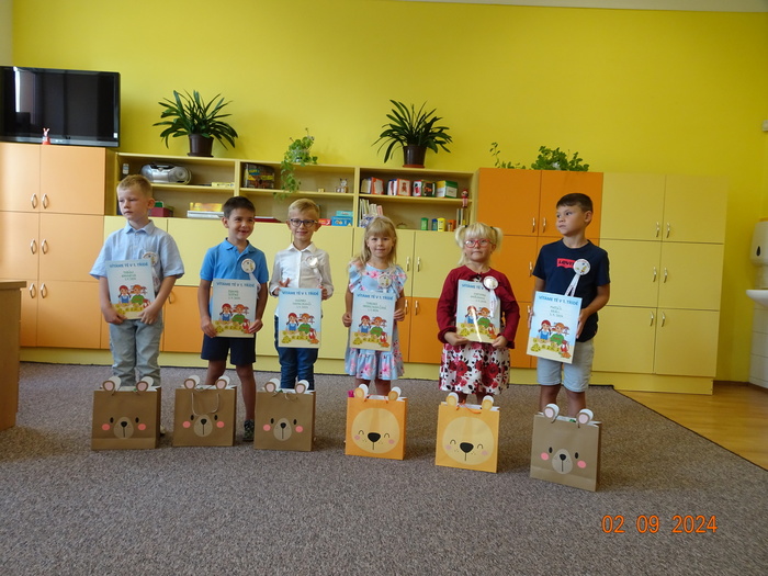 V pondělí 2. září jsme se po prázdninách sešli v naší škole, abychom společně přivítali šest nových žáků 1. ročníku a slavnostně zahájili nový školní rok 2024/2025. Naši prvňáčci byli slavnostně přivítání novou paní ředitelkou a panem starostou a následně se vydali do své třídy, kde se seznámili se svou paní učitelkou.
