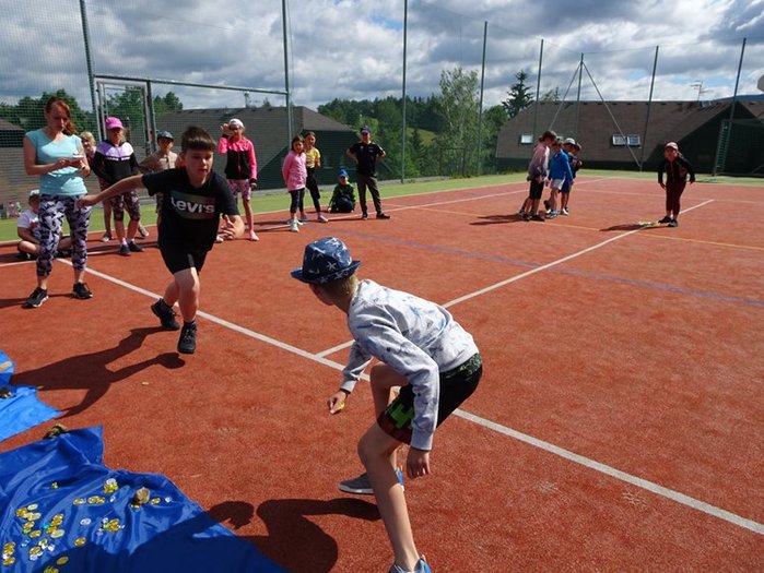 Úterý 21. června 2022 jsme na naší indiánské výpravě hledali vzácné dílky keramiky, ve zlatonosném potoce lovili zlaté valouny, skládali indiánské osmero, vyráběli si náhrdelník a náramek, v lese hledali peříčka vzácného ptáka a luštili indiánské hádanky. V bazénu jsme ukazovali plavecké umění indiána.