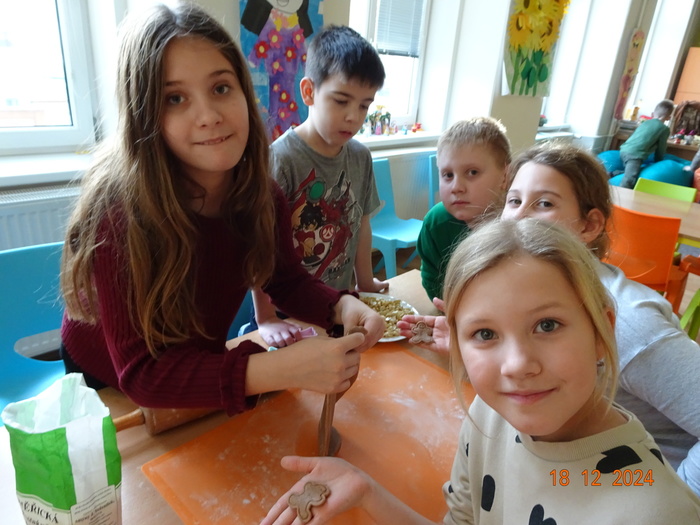 V odpolední družině jsme ve středu 18. 12. pekli a zdobili vánoční perníčky. Děti se snažily, aby jejich perníčky pěkně vypadaly. Ve škole to krásně vonělo a perníčky se dětem moc povedly. V pátek si na nich pochutnáme. Už se těšíme! Mňam!