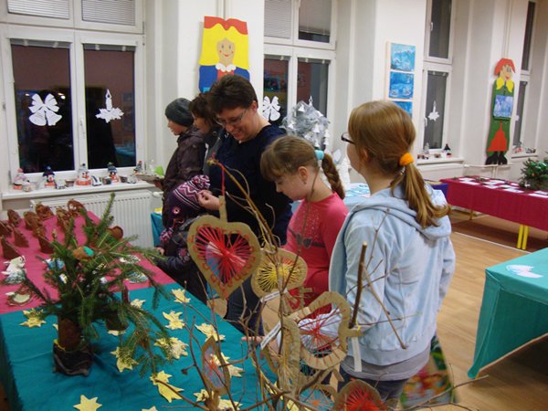 Po skončení besídky jsme všechny hosty pozvali na vánoční výstavu dětských prací, která byla připravená ve školní jídelně. Rodiče si mohli prohlédnout vánoční výzdobu a práce svých dětí. Již několikátým rokem se účastníme veřejné sbírky pořádané Fondem Sidus (vybavení dětských zdravotnických zařízení) a Občanským sdružením Život dětem (pomoc handicapovaným dětem na úhradu rehabilitačních pomůcek). Protože se domníváme, že se jedná o dobrou věc, tak na vánoční výstavce nabízíme k prodeji předměty těchto občanských sdružení v hodnotě 20, 25, 30 a 39 Kč. V letošním roce jsme pro Fond Sidus vybrali částku 1248 Kč a pro Sdružení Život dětem částku 1 240 Kč. Děkujeme za vaše dobrá srdce a finanční příspěvek. Nikdy totiž nevíme dopředu, kdo z nás či našich blízkých bude jednou pomoc potřebovat.