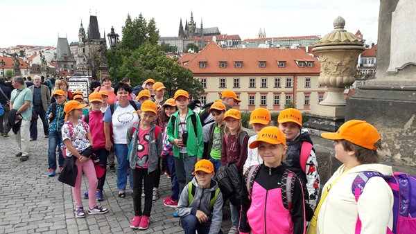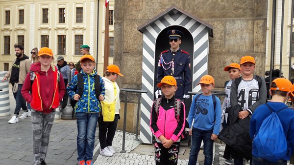 V pondělí 11. září 2017 se vydali naši žáci 3. – 5. ročníku do Prahy. Z hlavního nádraží vedla naše cesta nejdříve k Prašné bráně a na Staroměstské náměstí. Kousek cesty jsme se svezli pražským metrem, což byl pro některé žáky velký zážitek, protože to byla jejich první jízda. Ze stanice Malostranská už vedly naše kroky po Starých zámeckých schodech k Pražskému hradu. Naším cílem byla Kancelář prezidenta republiky. U Kohlovy kašny na II. hradním nádvoří jsme měli sraz se zaměstnankyní Kanceláře, která nás dovedla na I. hradní nádvoří, kde jsme měli možnost ve 12 hodin zblízka sledovat Slavnostní střídání Hradní stráže. Potom už následovala samotná prohlídka prostor Pražského hradu a míst, která většinou nejsou veřejnosti běžně přístupná. Nahlédli jsme do prostor bývalého bytu prvního prezidenta T. G. Masaryka a jeho pracovny, prohlédli jsme si archivní fotografie hradu, kinosál z 60. let 20. století, knihovnu a mnoho zajímavých místností. Zpáteční cesta vedla Nerudovou ulicí přes Karlův most a Václavské náměstí zpět na hlavní nádraží. Domů jsme se vrátili večer unavení, ale spokojení z prožitého dne.