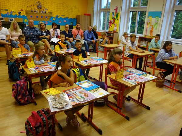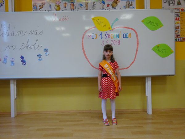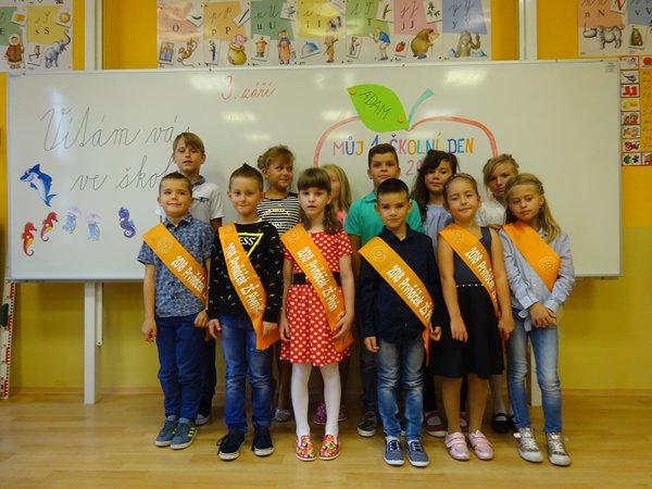 V pondělí 3. září 2018 jsme se po prázdninách opět sešli v naší škole. Přivítali jsme šest nových žáků 1. ročníku, kteří se v doprovodu své rodiny zúčastnili zahájení nového školního roku 2018/2019. Nejdříve všechny žáky přivítala paní ředitelka, poté pan starosta a místostarosta. Své mladší kamarády přivítali i žáci a žákyně starších ročníků. Patroni ze 4. ročníku přivítali své prvňáčky a po slavnostním šerpováním je odvedli do jejich nové třídy. Adélko, Karolínko, Natálko, Davídku, Adámku a Kubíku, přejeme vám, ať se vám v naší škole líbí a zažijete v ní mnoho úspěchů. Úspěšný školní rok 2018/2019 přejeme také všem žákům, jejich rodičům i paní učitelkám.