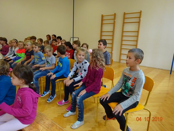 Příjemné dopoledne s klasickými dětskými písničkami prožily děti naší školy a mateřské školy v pátek 4. října 2019. Spolu s hudebním doprovodem kytary, na kterou hrál pan Kamil Čapčuch, si děti připomenuly nejznámější lidovky a témata v nich obsažená. V hudebním programu "Zpívánky" si děti zopakovaly i nejznámější hudební nástroje, zvířata, povolání i roční období.
