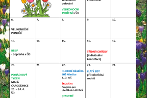 víceV dubnu nás čeká velikonoční řádění, setkáme se s rodiči i s předškoláčky, rozšíříme si obzory v dopravní výchově a možná v závěru poletíme na koštěti! :-)