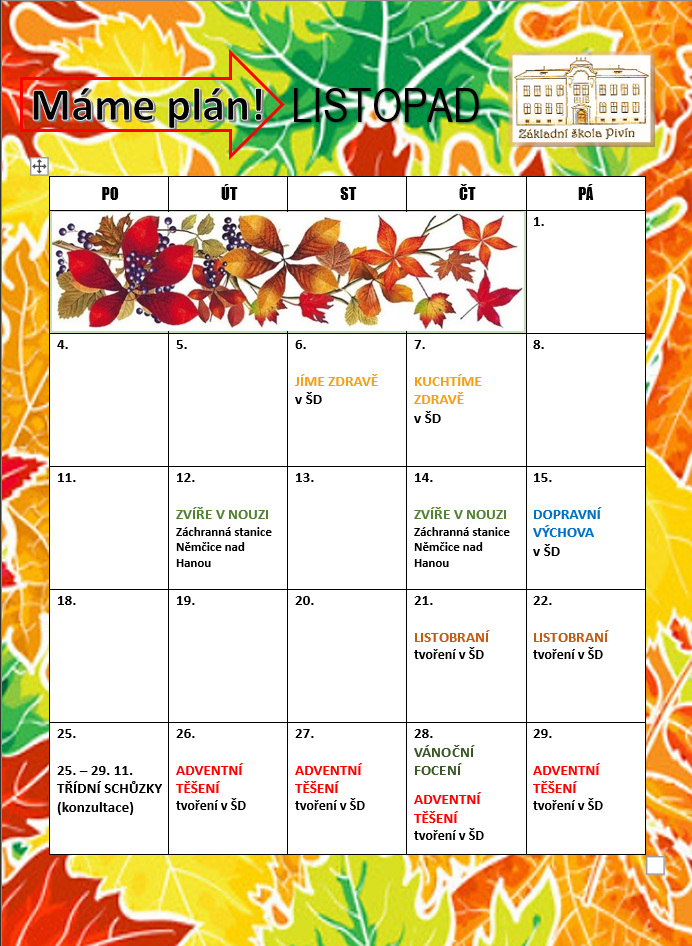 Zveřejňujeme plán akcí a událostí na měsíc listopad 2024.