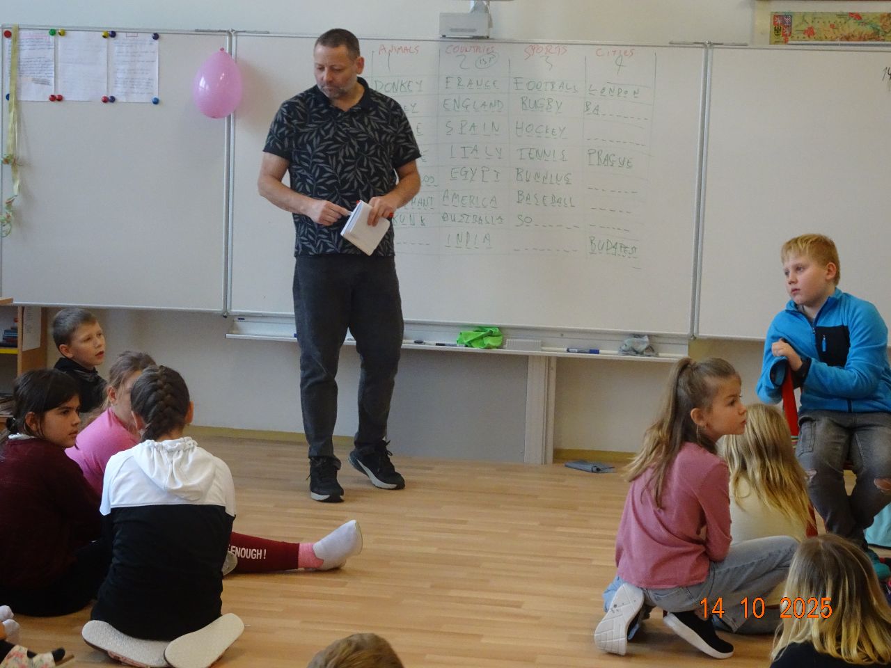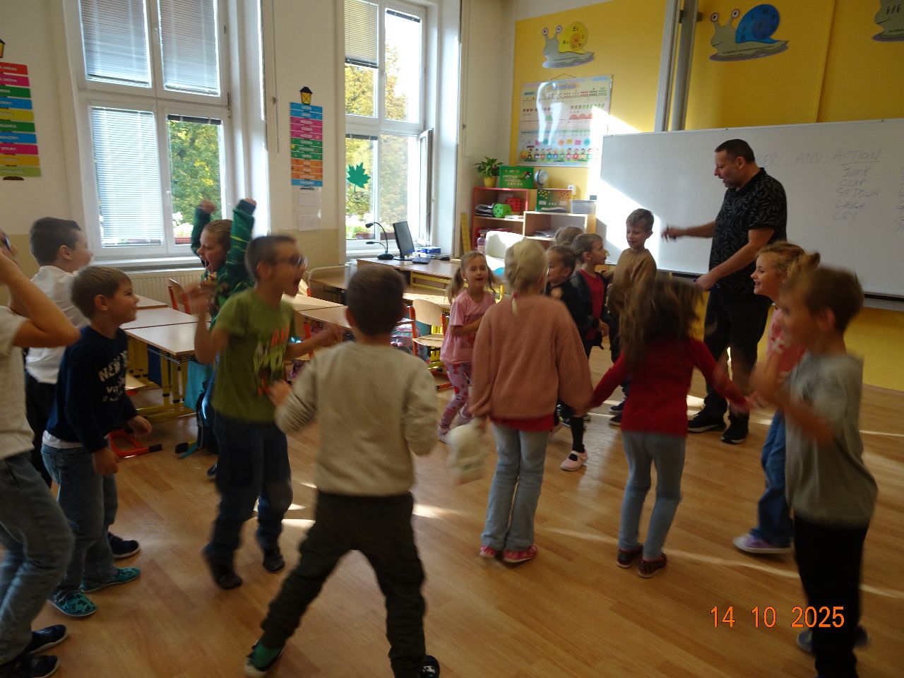 Aby si všichni žáci naší školy zdokonalili své jazykové schopnosti v anglickém jazyce, přijel za nimi v úterý 14. října rodilý mluvčí Damien, který s nimi formou her procvičoval slovní zásobu a komunikaci v anglickém jazyce.