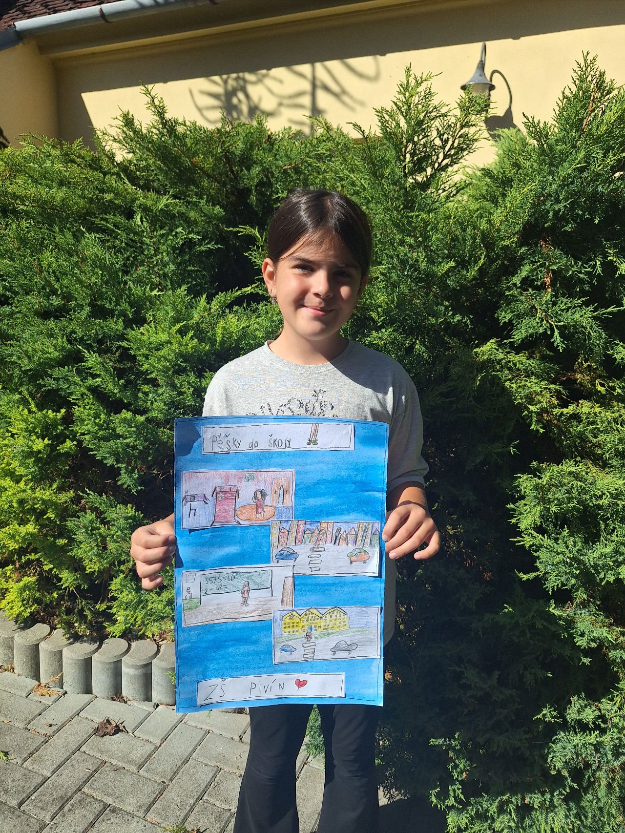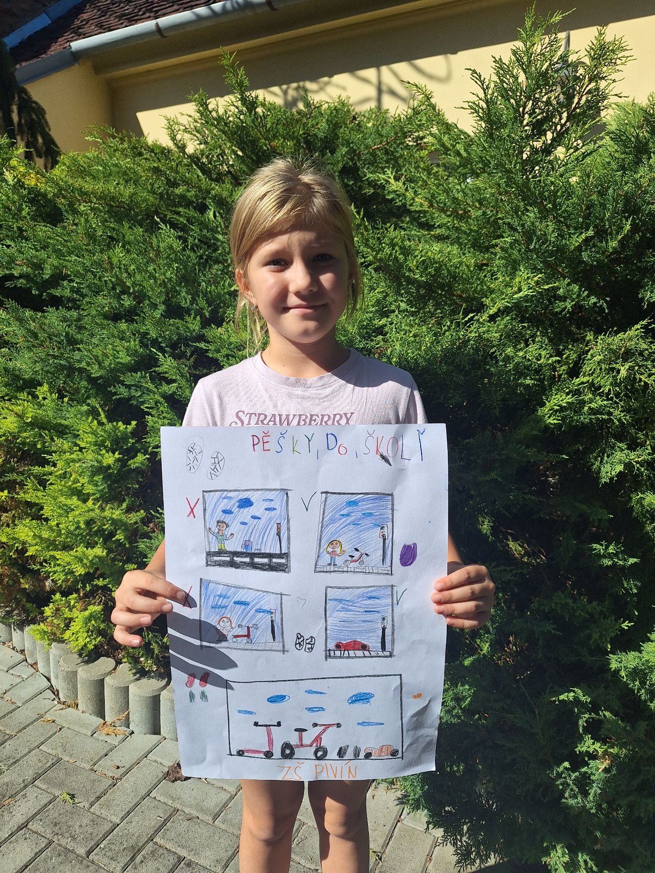 Nezapomněli jsme ani na to, kdo je chodec a kdo řidič. Žákyně 2. oddělení navíc vytvořily plakát na téma „Pěšky do školy“.