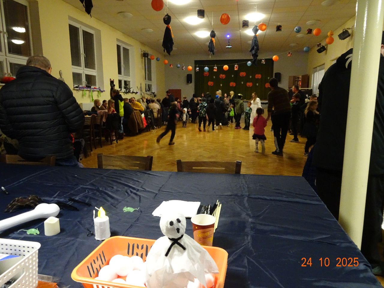 Přišlo více než 130 namaskovaných dětí, pro které byla připravena různá stanoviště a také výtvarná dílna, kterou nachystaly paní učitelky naší školy. Dospělí si mohli pochutnat na různých specialitách a posedět v sále obecního domu. Rovněž se všichni mohli zúčastnit strašidelné stezky odvahy. Díky patří všem, kteří se na akci podíleli, zvláště aktivním členům SRPŠ a paním ředitelce a učitelkách naší školy, které se podílely na výzdobě sálu a účasti na některých stanovištích.