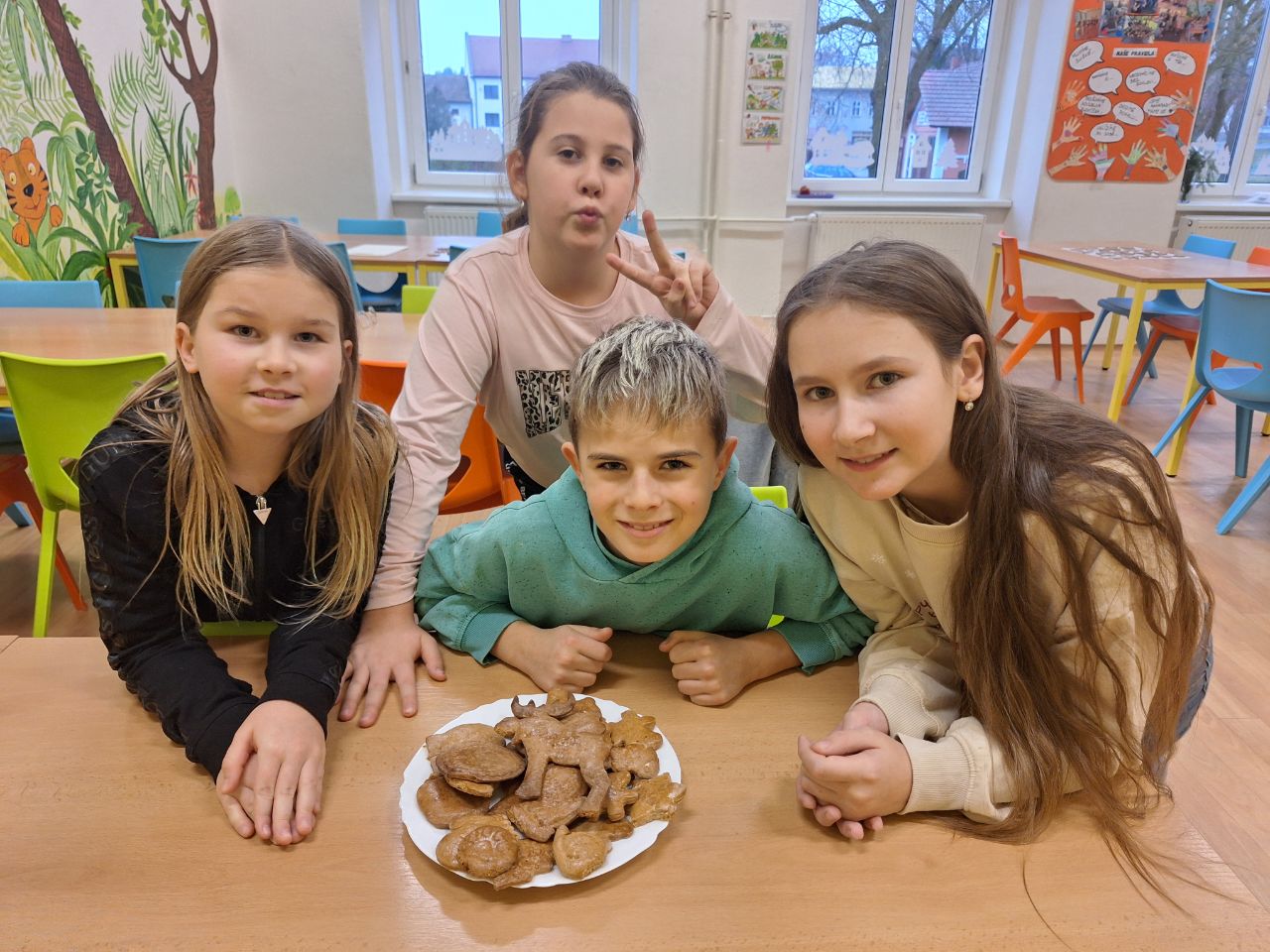 Děti válely těsto, vykrajovaly a těšily se, až společně ochutnají svoje výrobky.