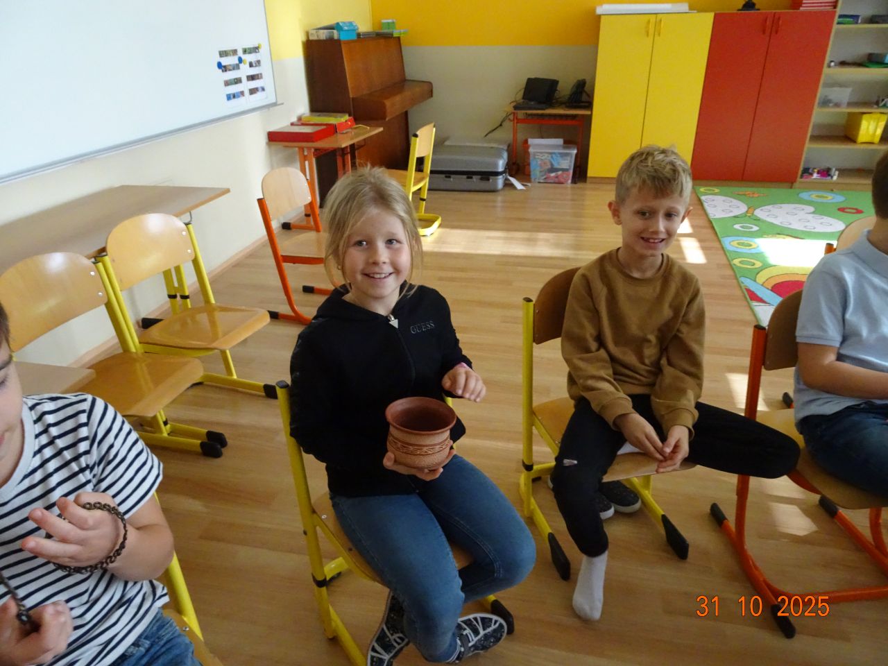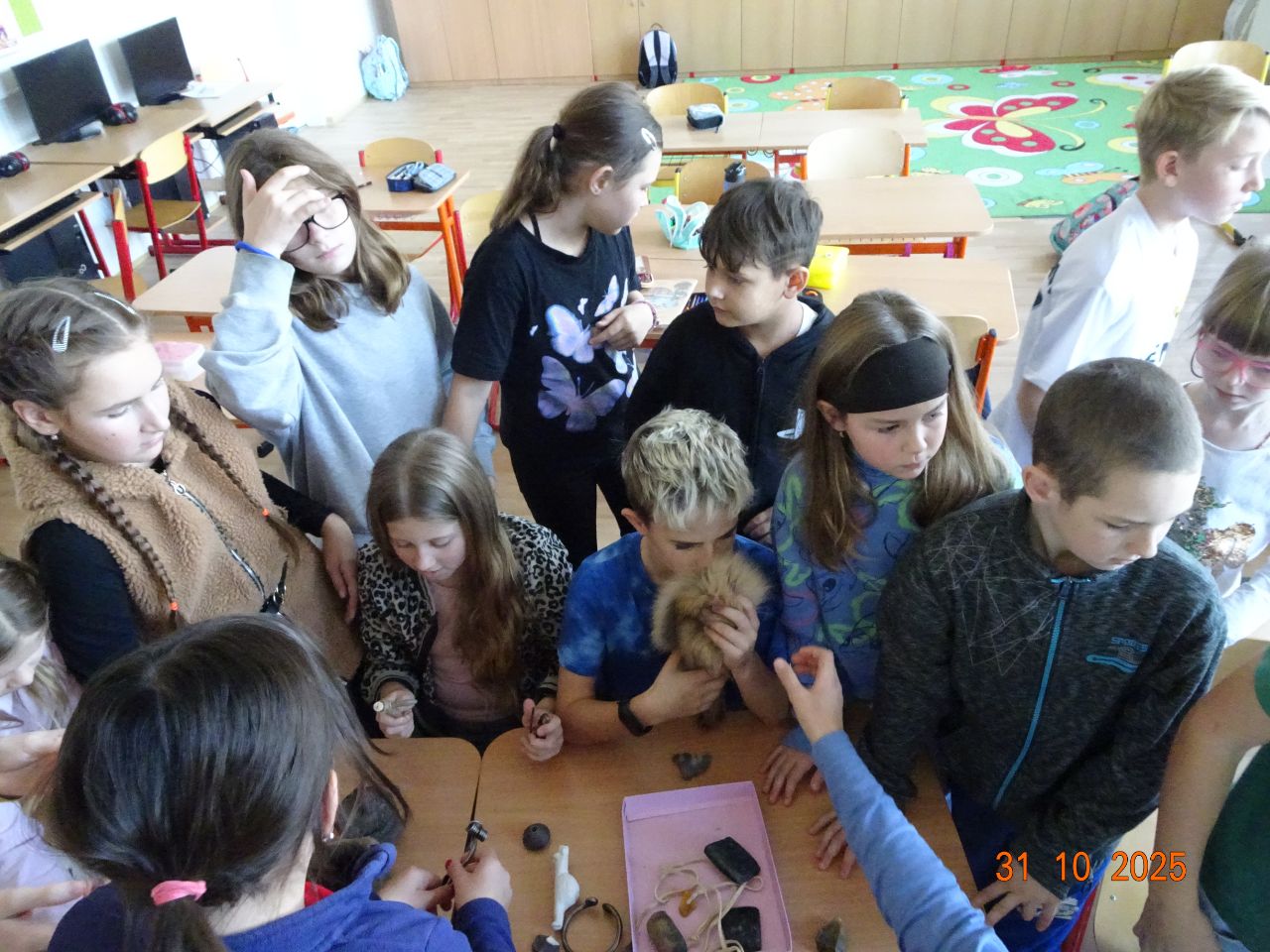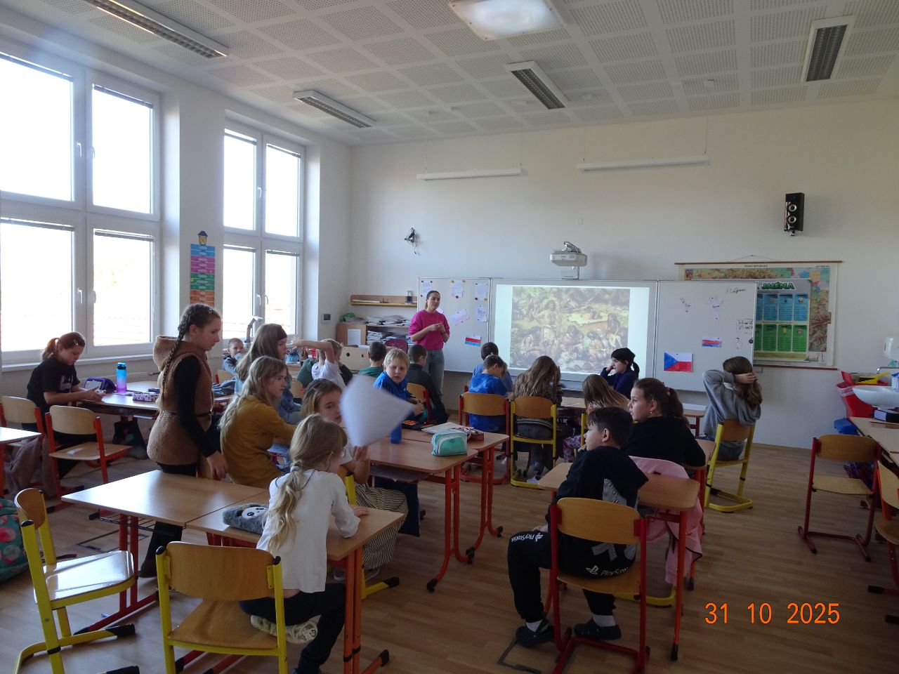 V pátek 31. října naši školu navštívily pracovnice muzea, které pro žáky připravily vzdělávací program zaměřený na život lidí v pravěku.