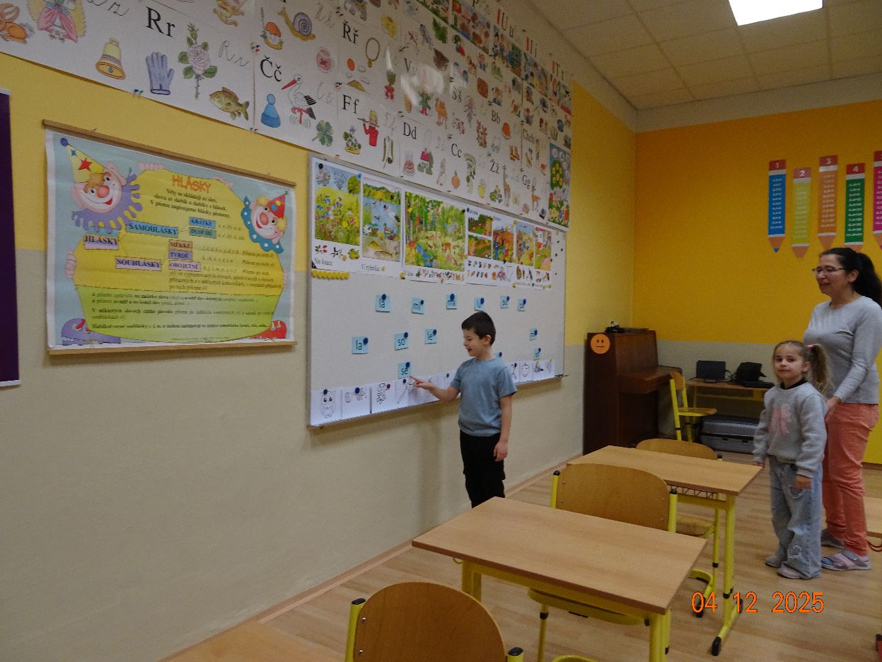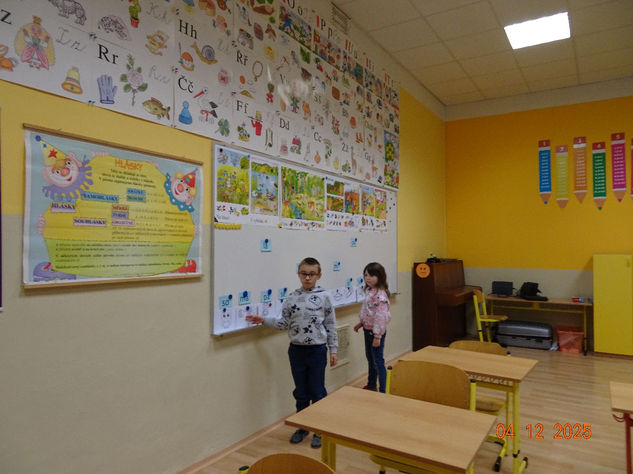 Do školy chodí teprve tři měsíce, ale za tuto krátkou dobu udělali velký pokrok. Umí počítat do šesti, znají již devět písmen, čtou slabiky, slova i první jednoduché věty a postupně si osvojují psací písmo.