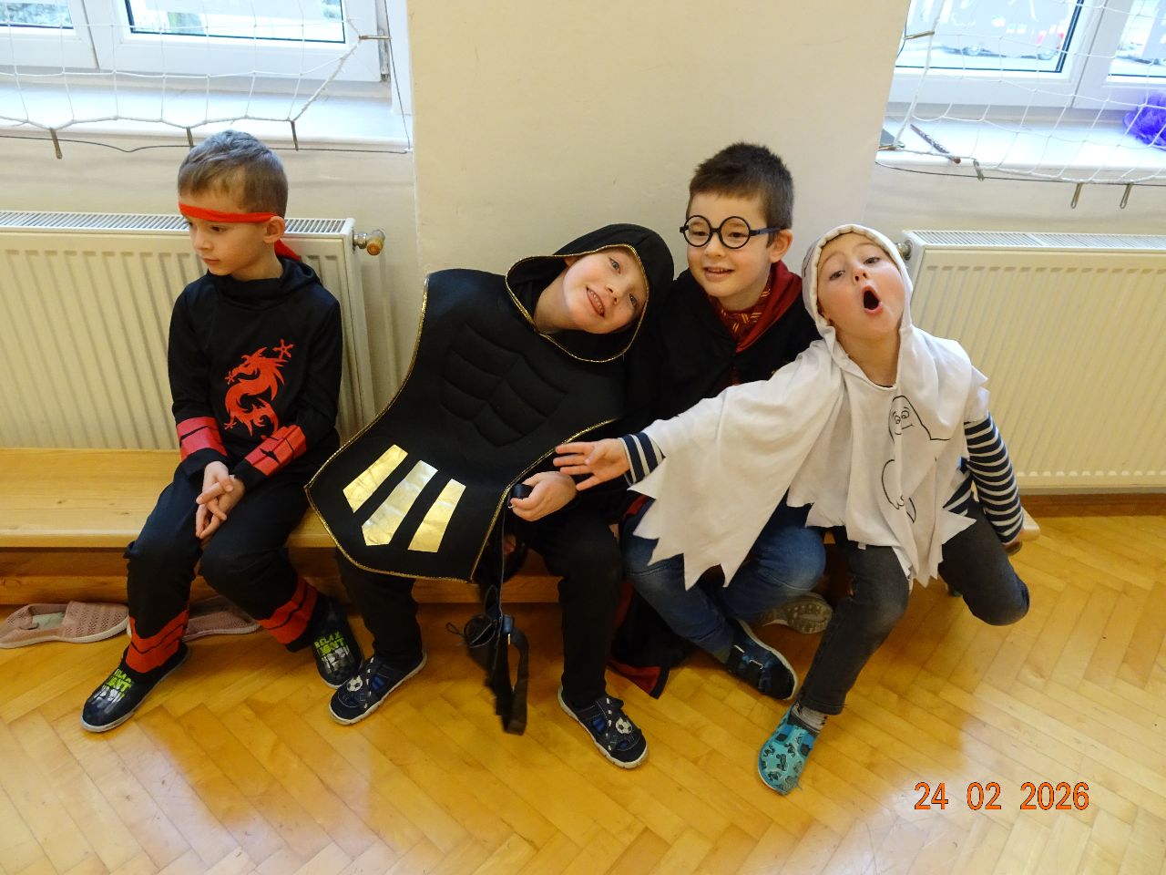 V úterý 24. února na děti čekalo radostné odpoledne plné karnevalového reje masek. Tělocvična se zaplnila pestrými kostýmy a dobrou náladou.