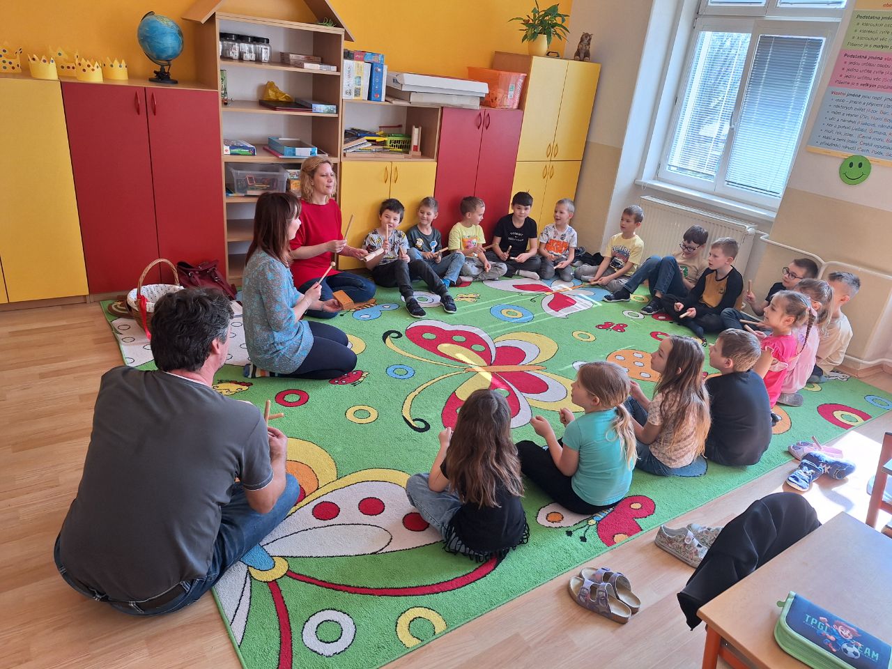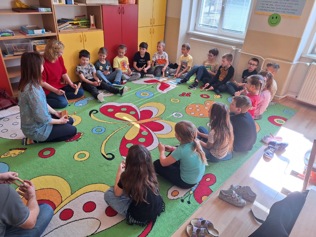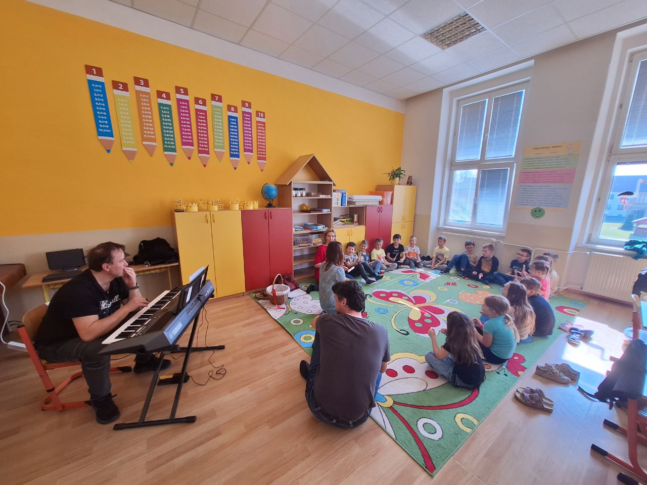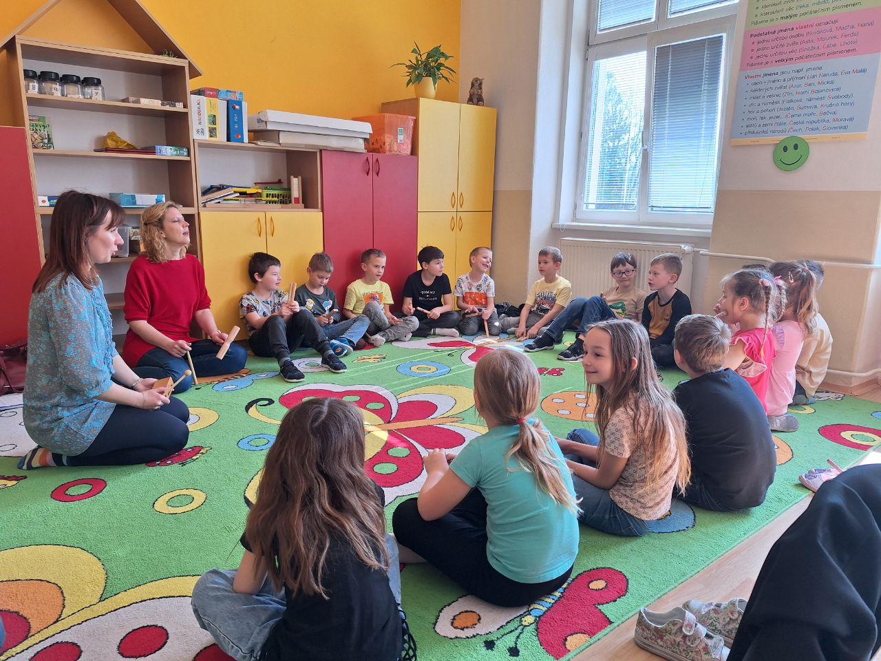 Během setkání si žáci vyzkoušeli různé hudební nástroje, společně si zazpívali, zatančili na jarní melodie a na závěr si povídali o hudbě i svých zkušenostech. Hodina byla pro děti velmi příjemným zpestřením a už teď se těší na další setkání.