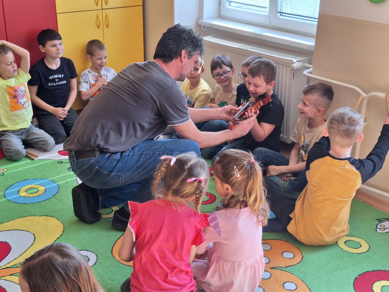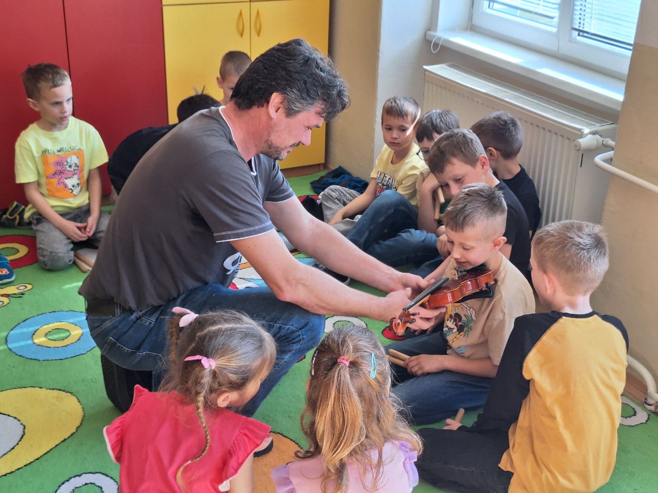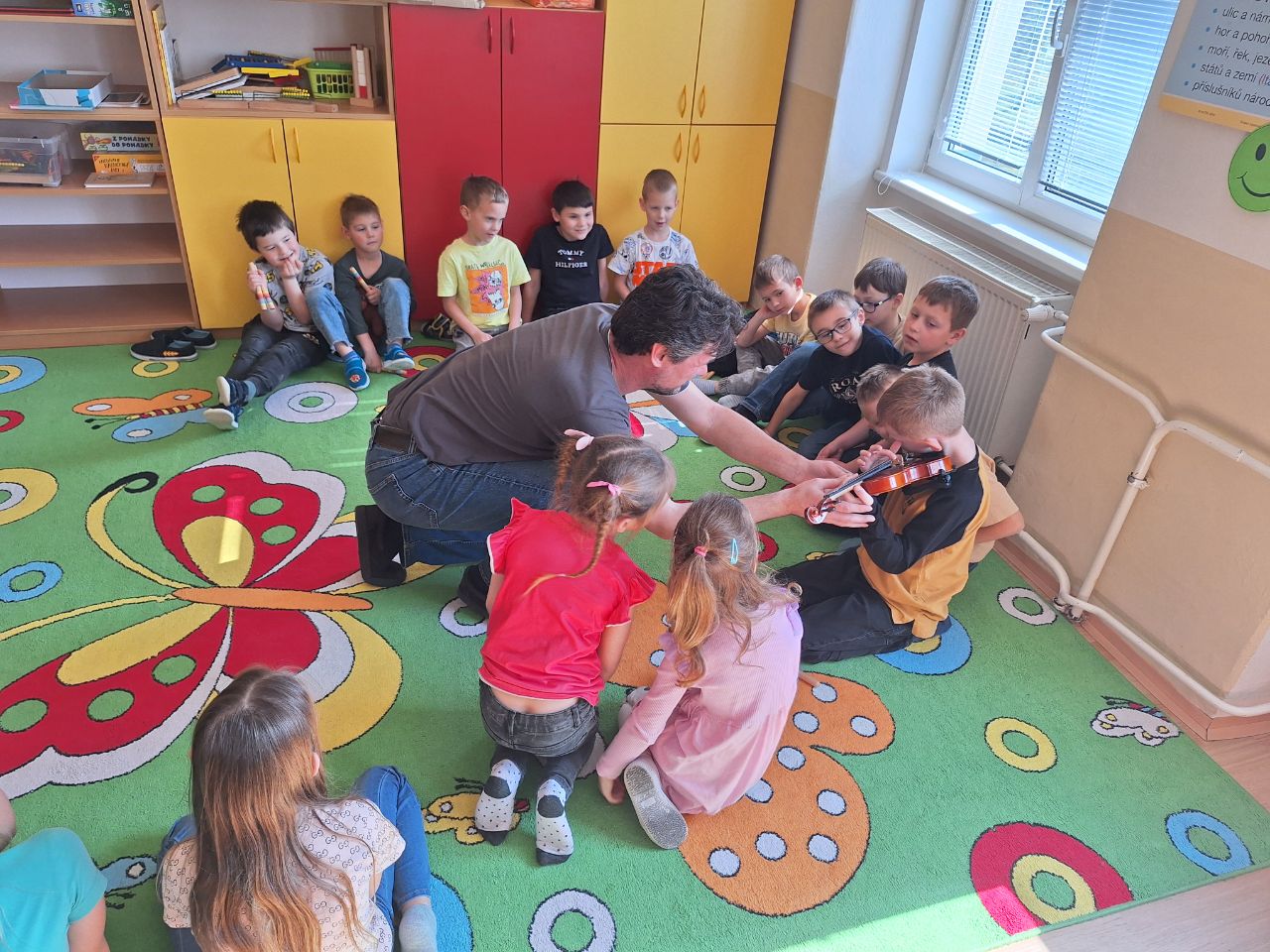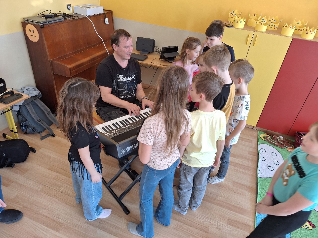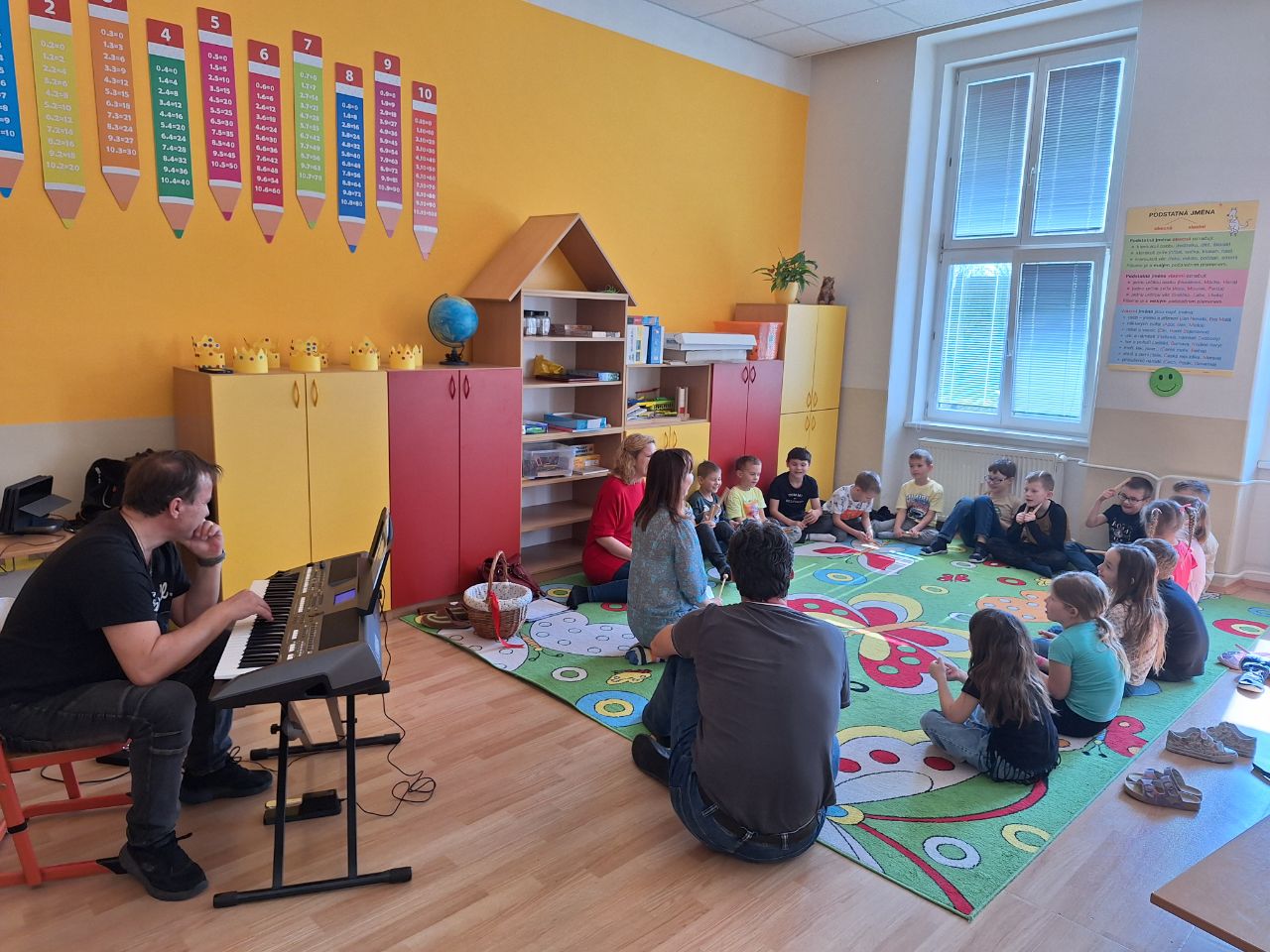 Během setkání si žáci vyzkoušeli různé hudební nástroje, společně si zazpívali, zatančili na jarní melodie a na závěr si povídali o hudbě i svých zkušenostech. Hodina byla pro děti velmi příjemným zpestřením a už teď se těší na další setkání.