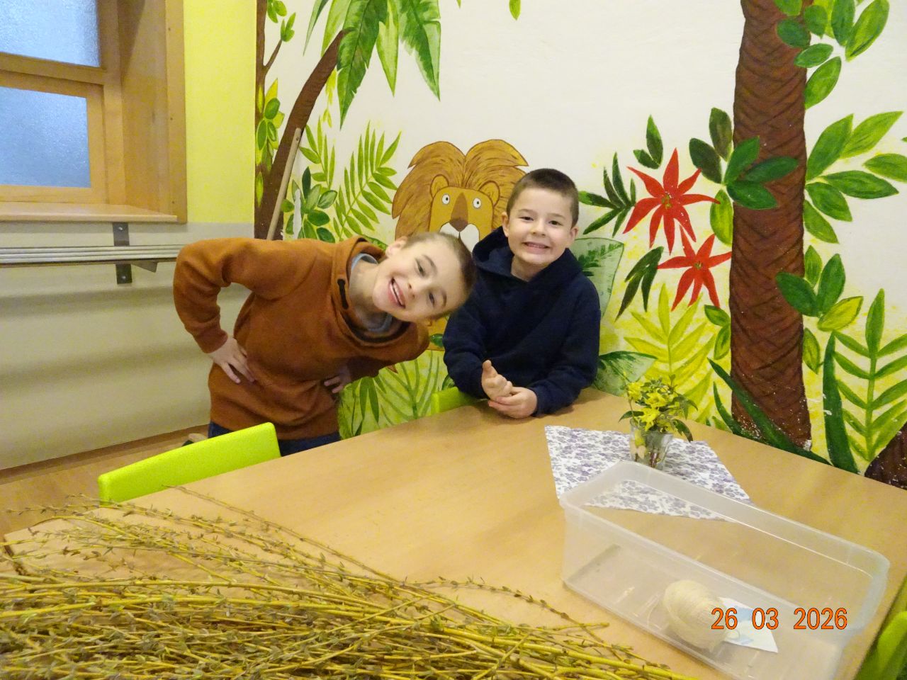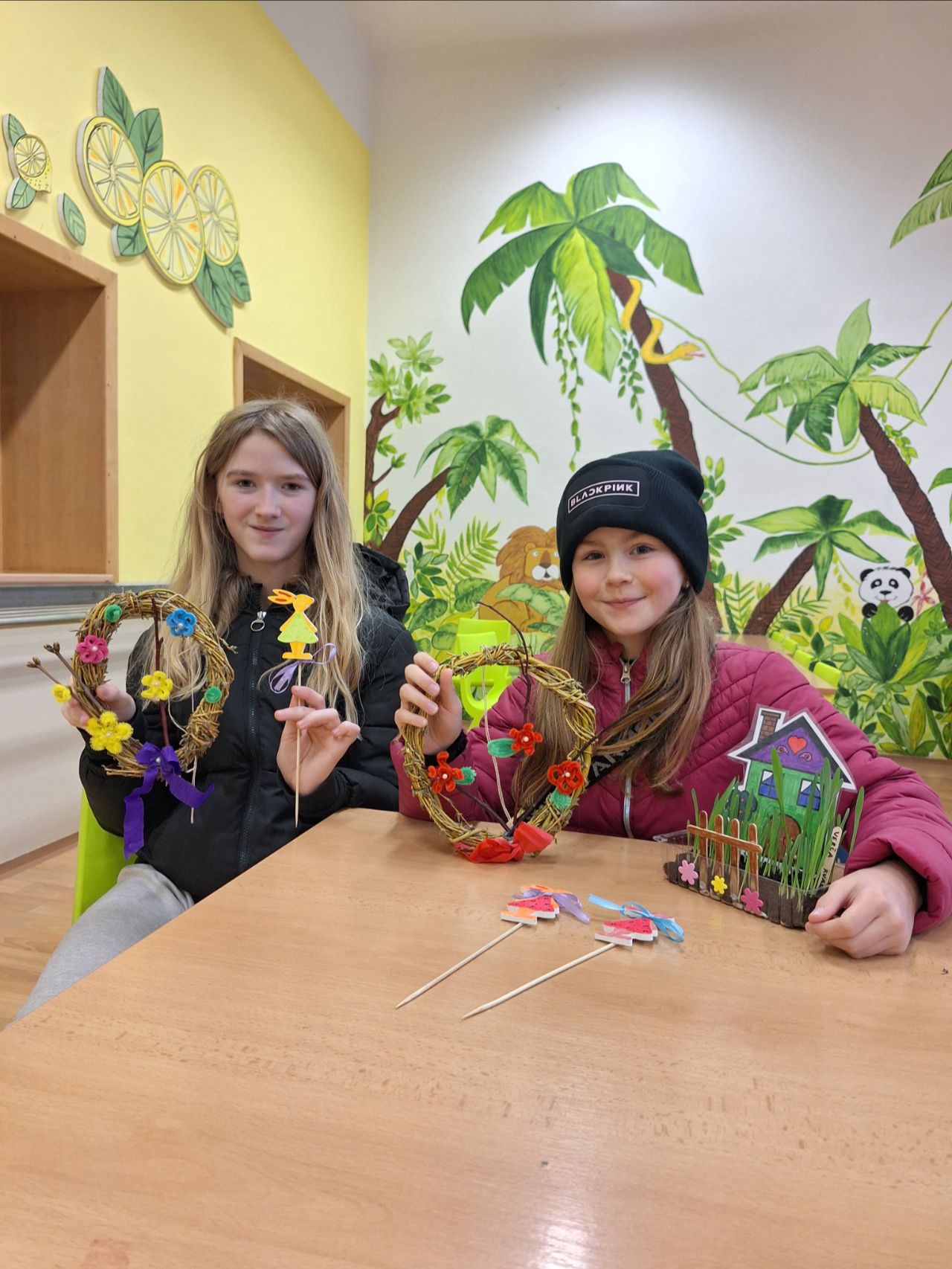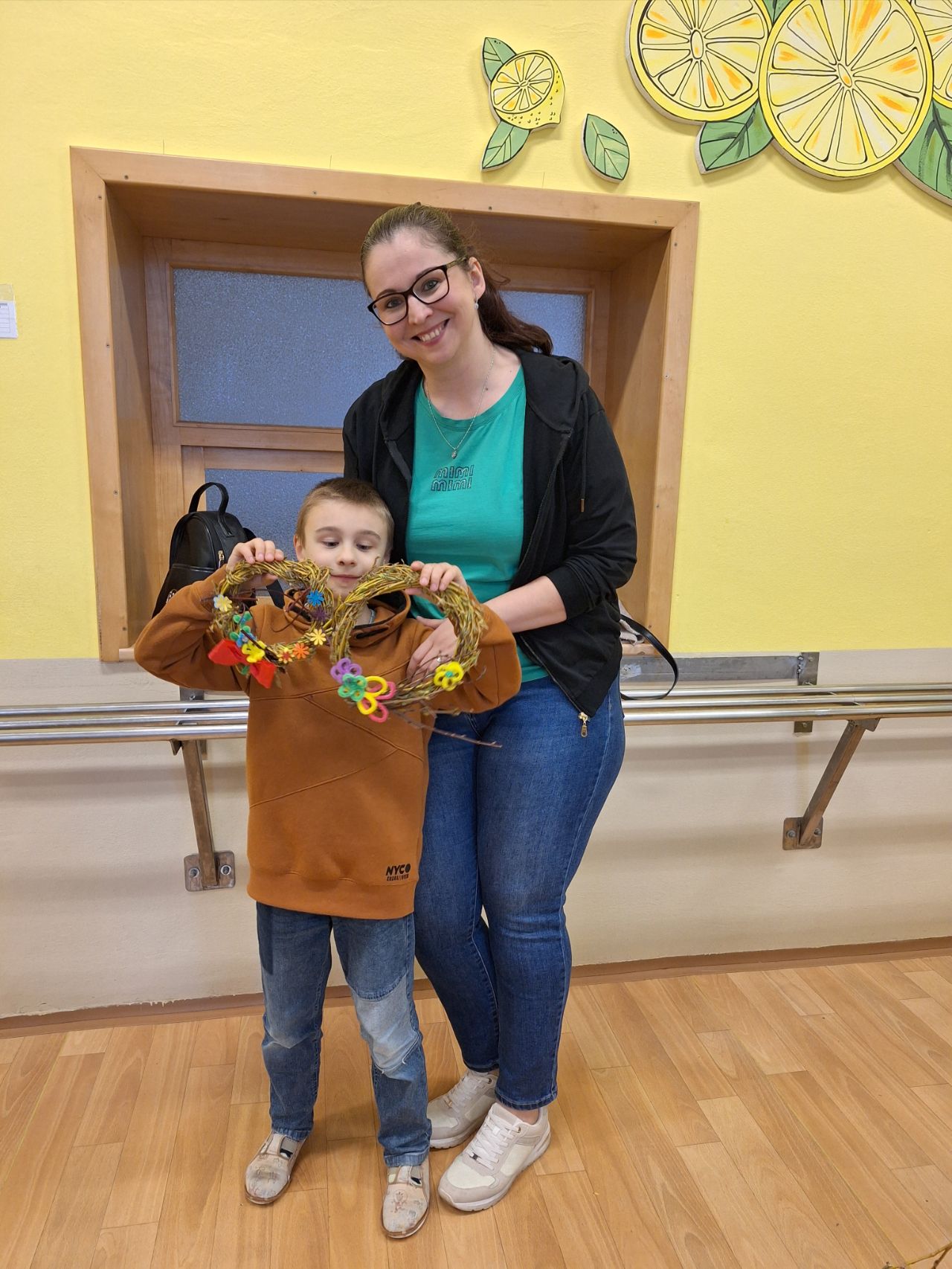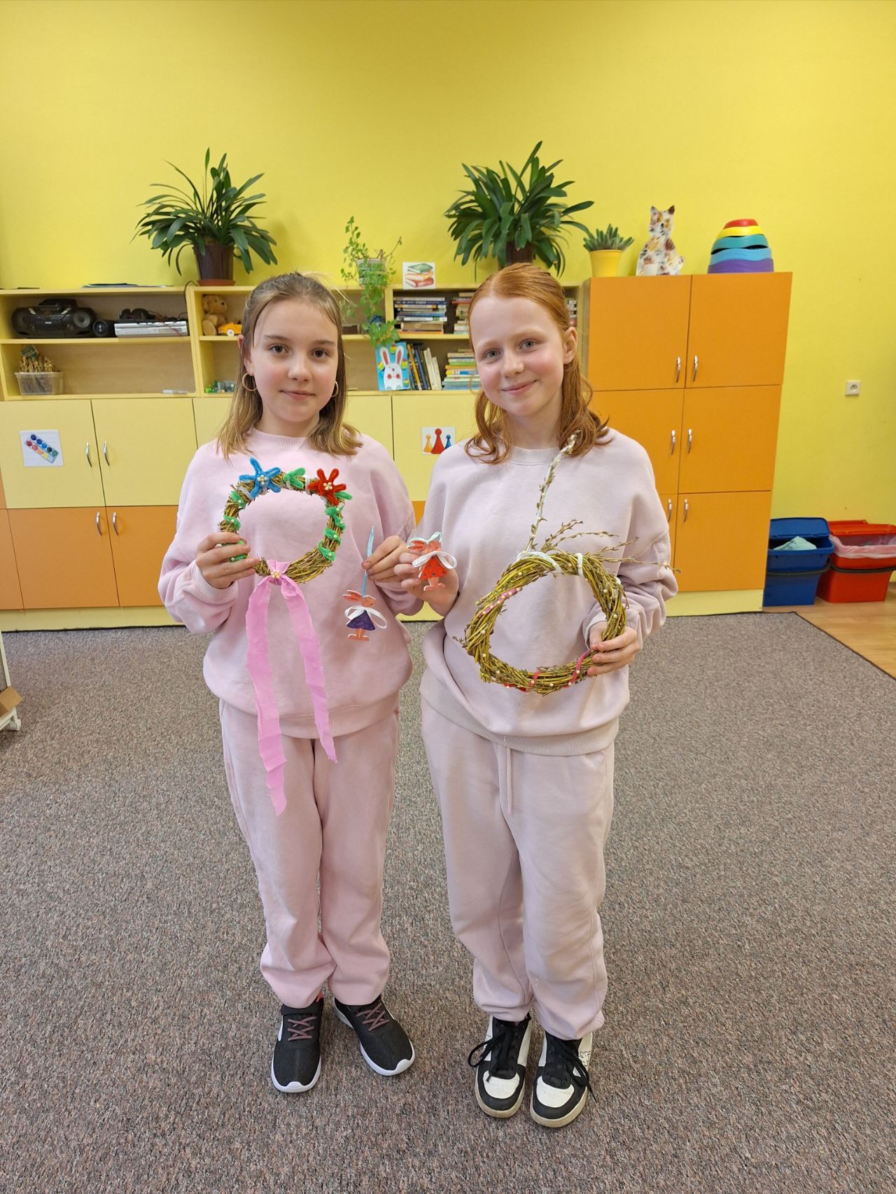 Pozvání přijali rodiče i sourozenci. Na stanovištích si účastníci vyrobili jarní věneček a velikonočního zajíčka. Zajíčka si děti samy vybarvily a věnec ozdobily podle své fantazie. Všichni měli radost ze svých výrobků.