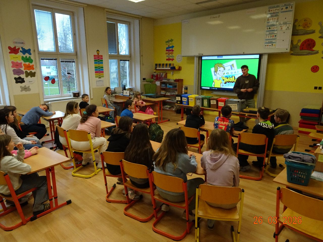 Ve čtvrtek 26. března navštívil naši školu Tonda Obal, který dětem přiblížil správné třídění odpadu.