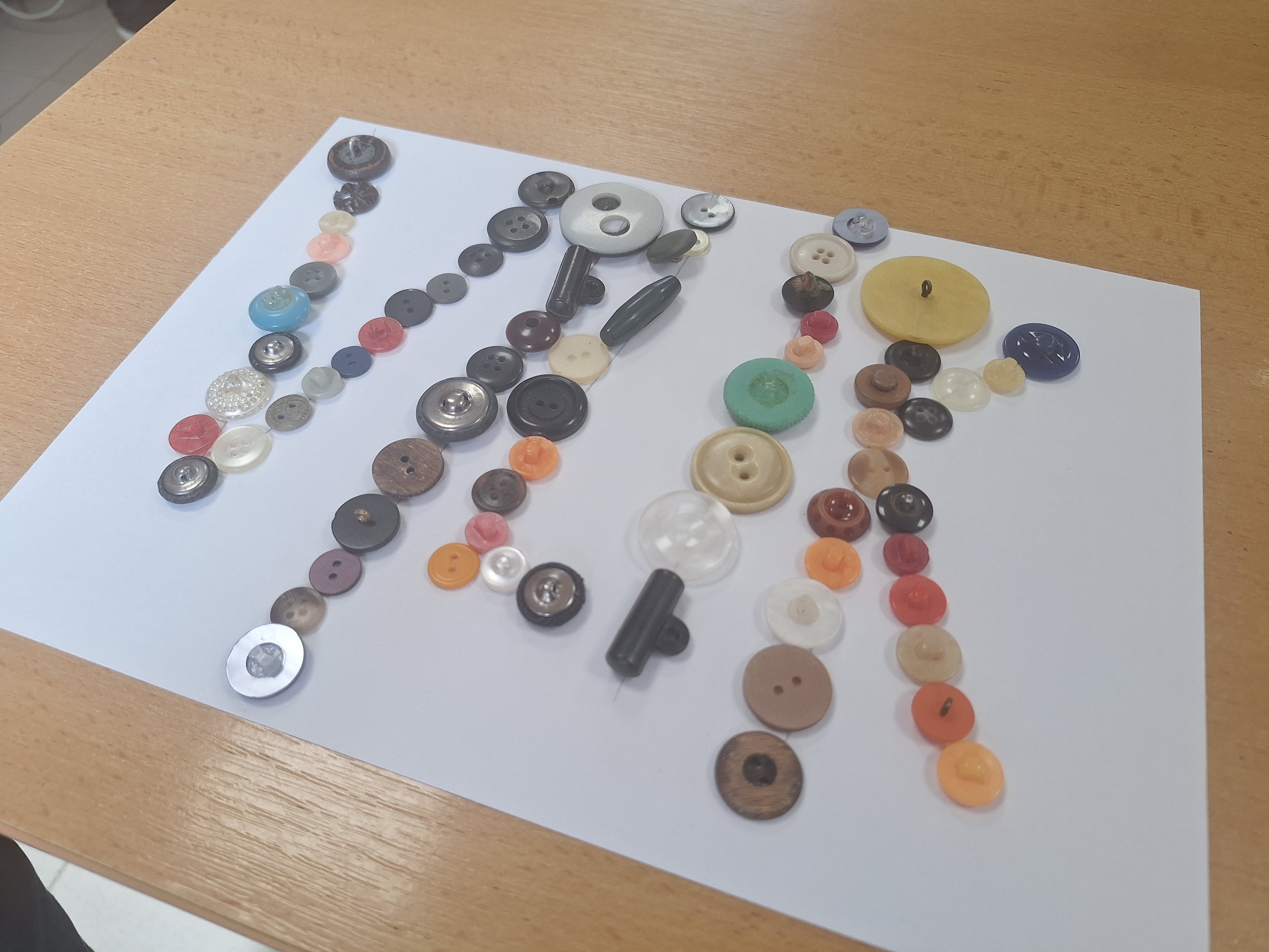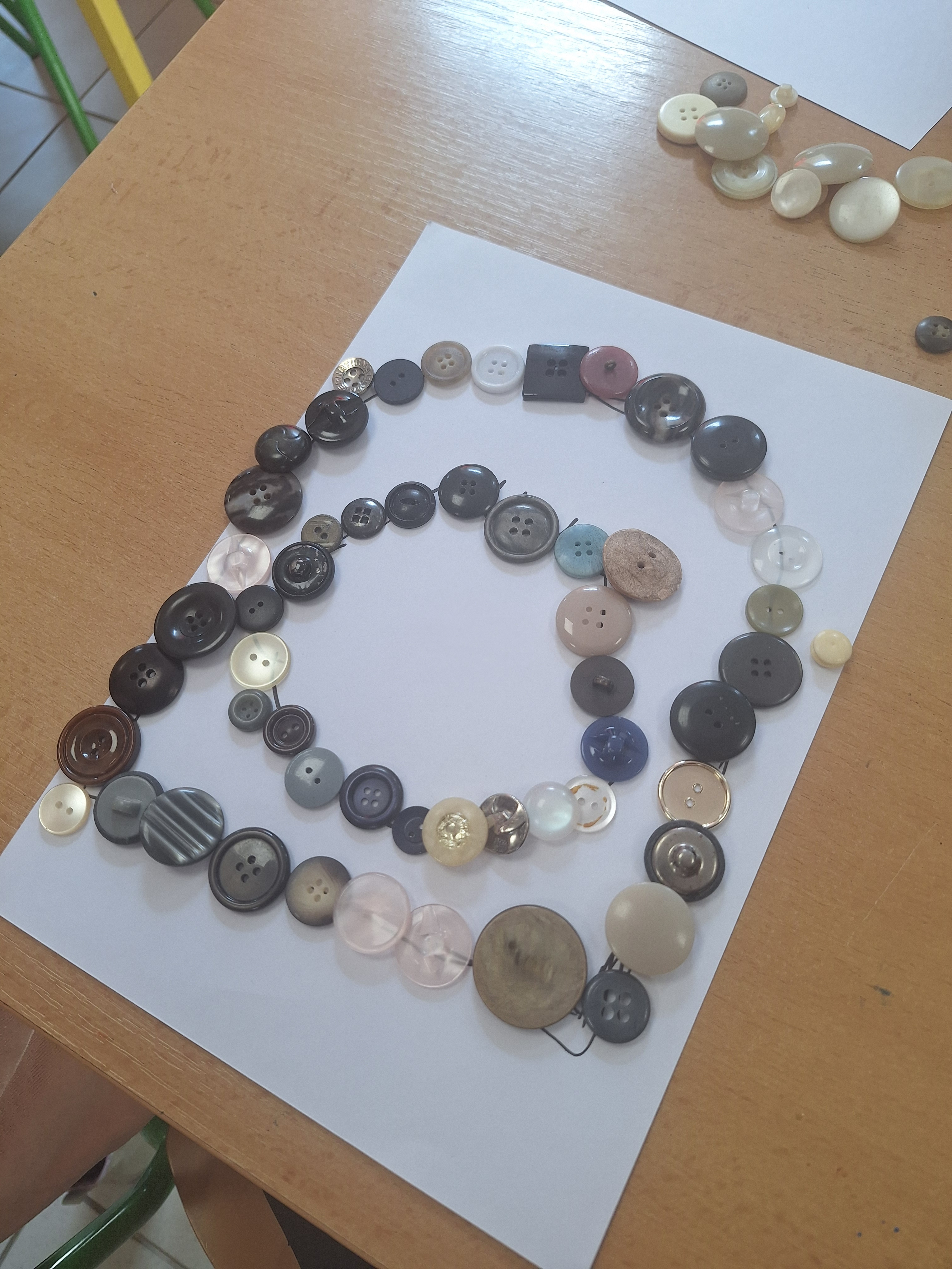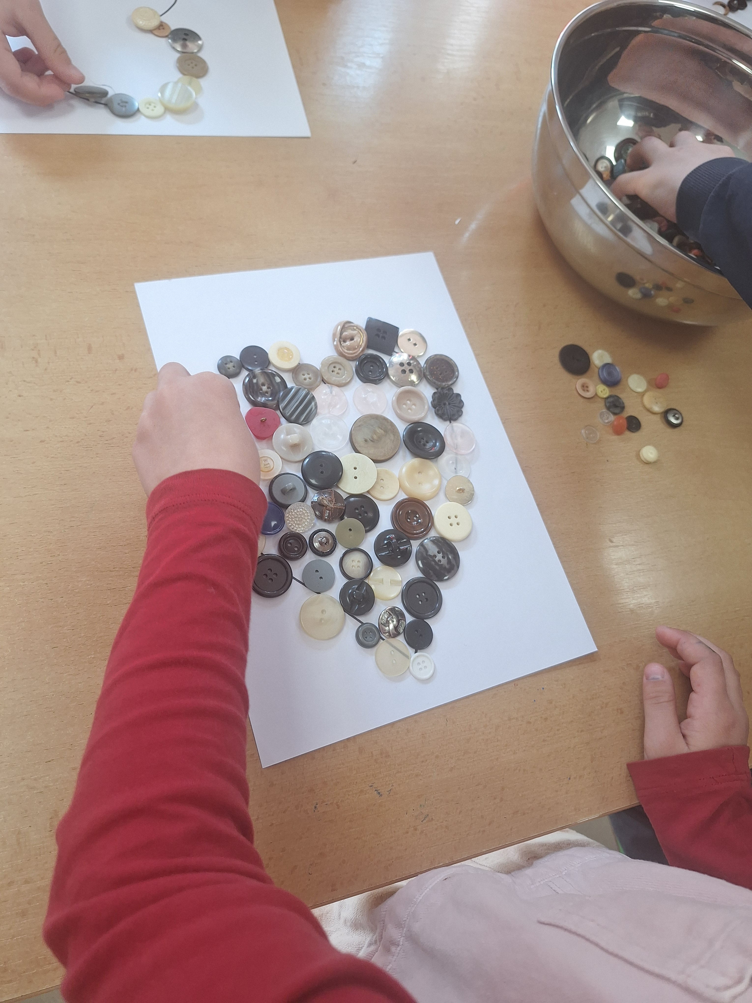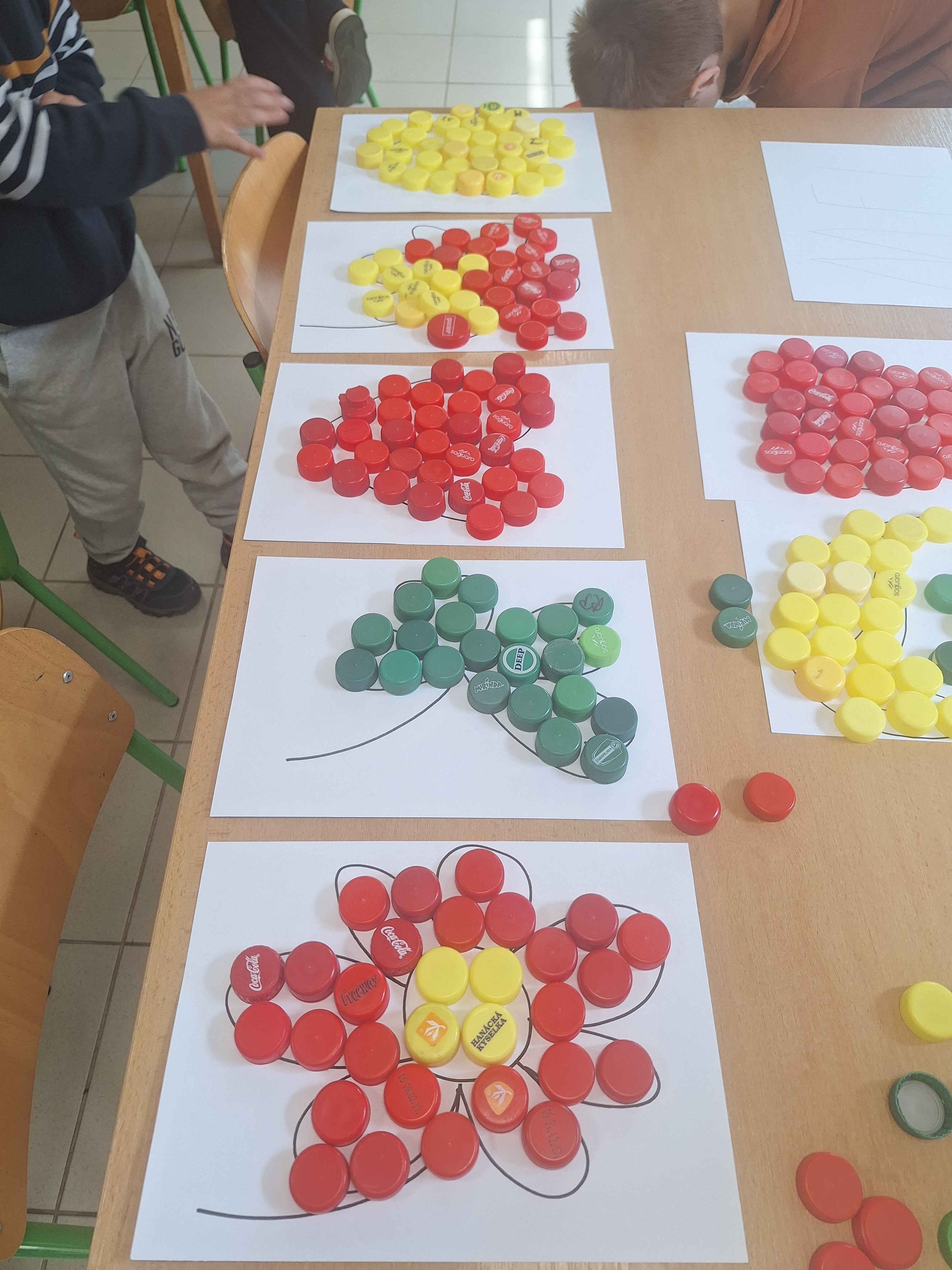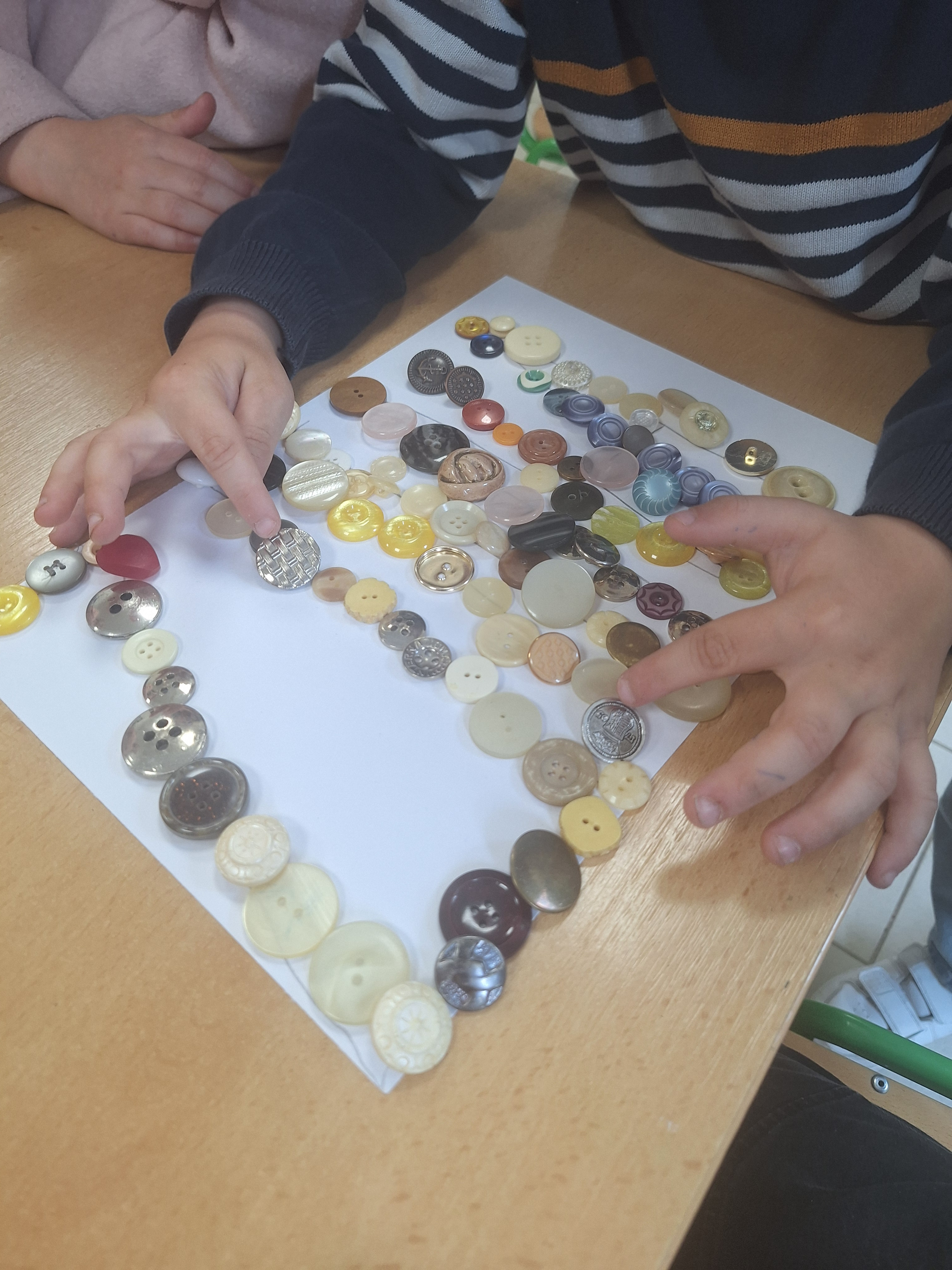 Na pěti stanovištích skládali různé obrazce podle předloh, které si sami vybrali. K dispozici měli pestrý materiál, například knoflíky, vršky od PET lahví či různé druhy luštěnin.