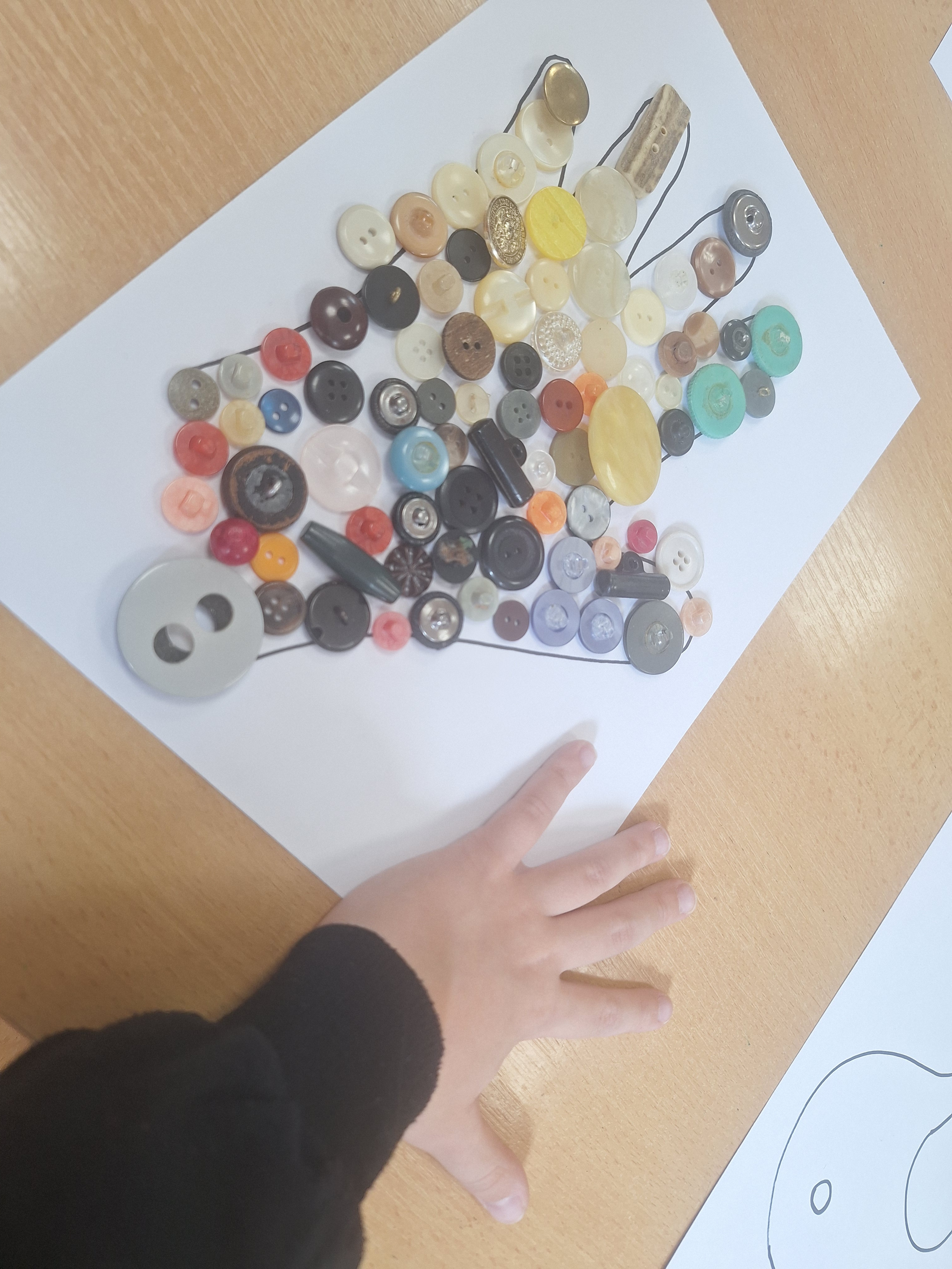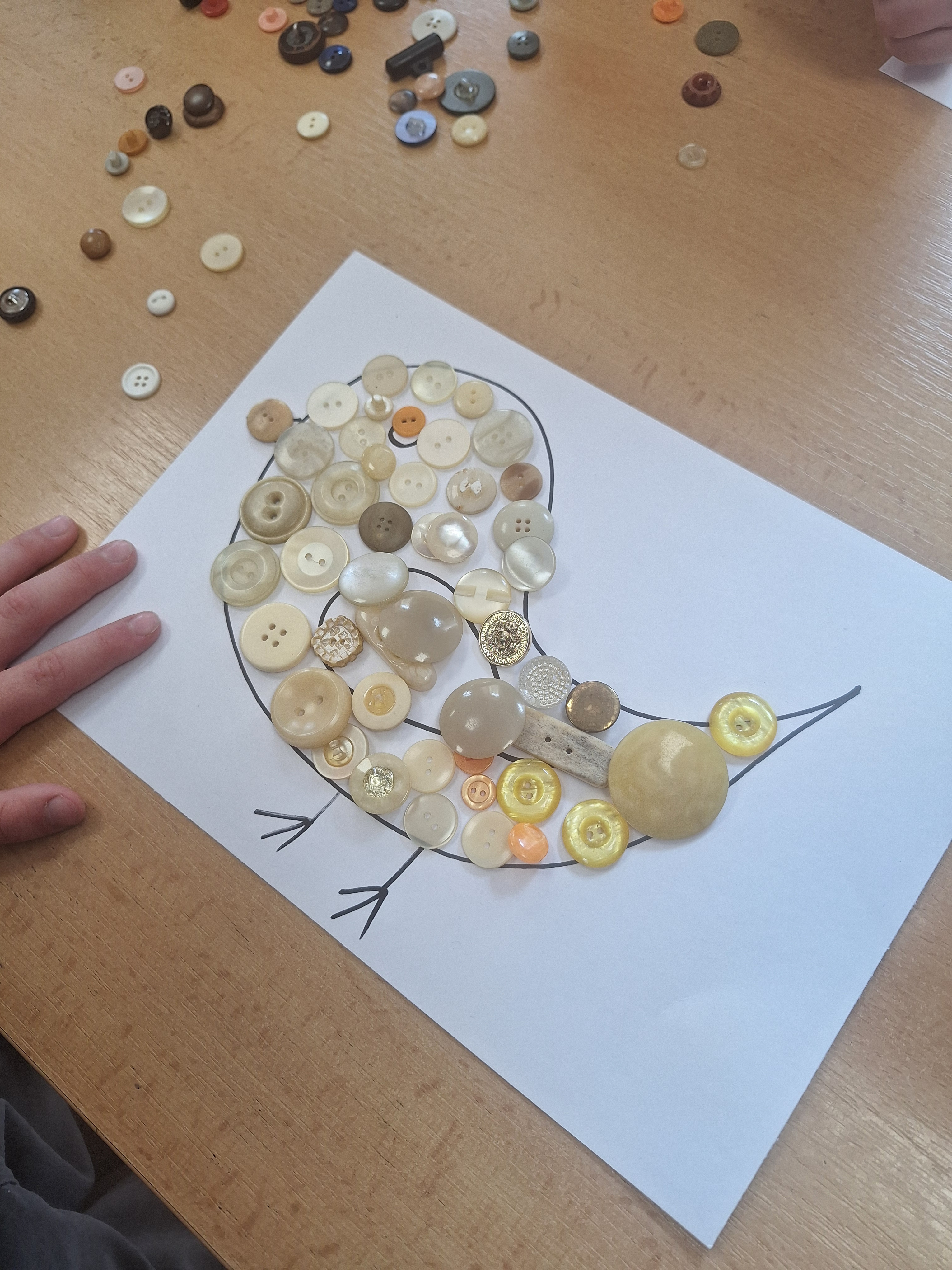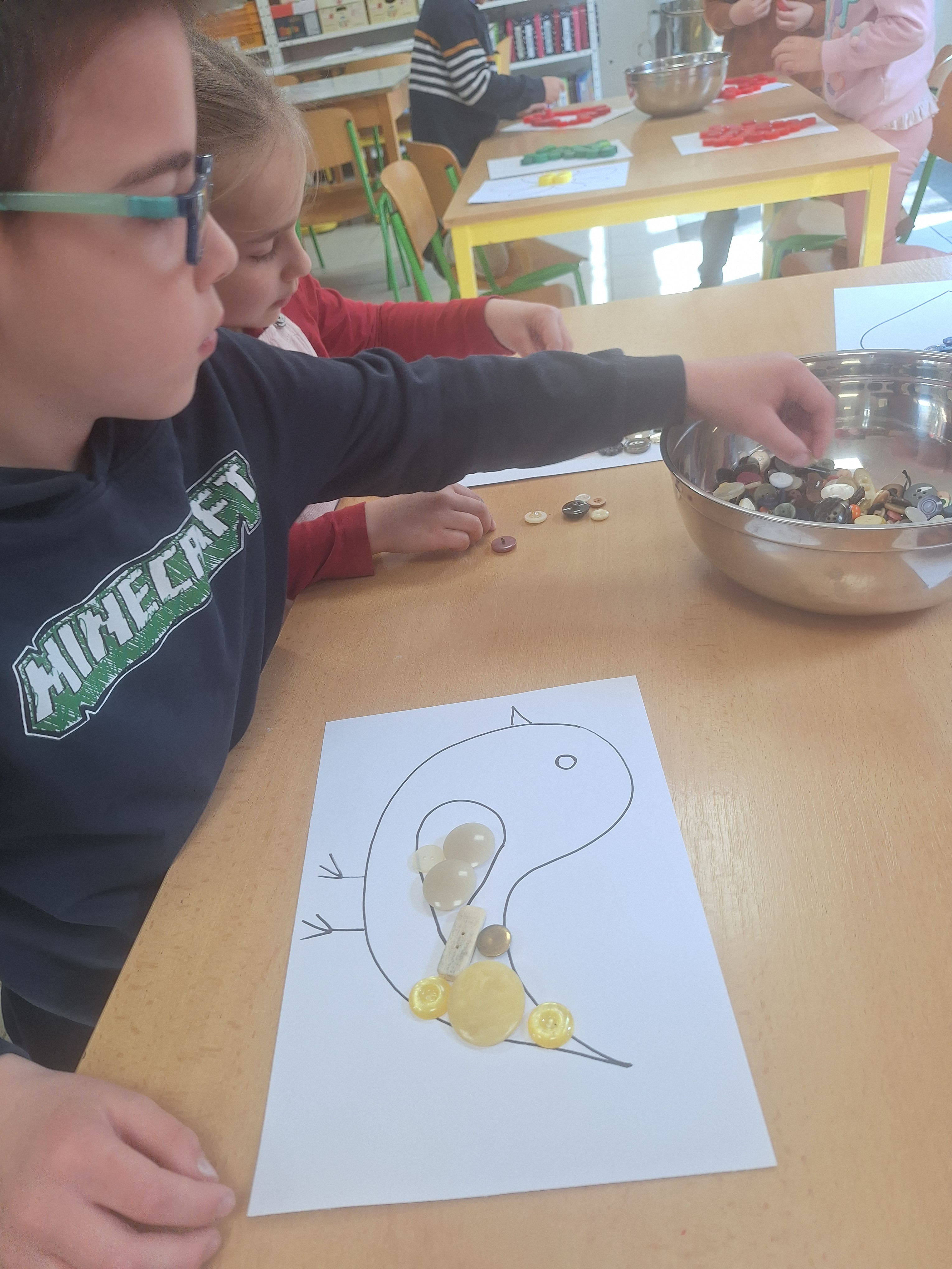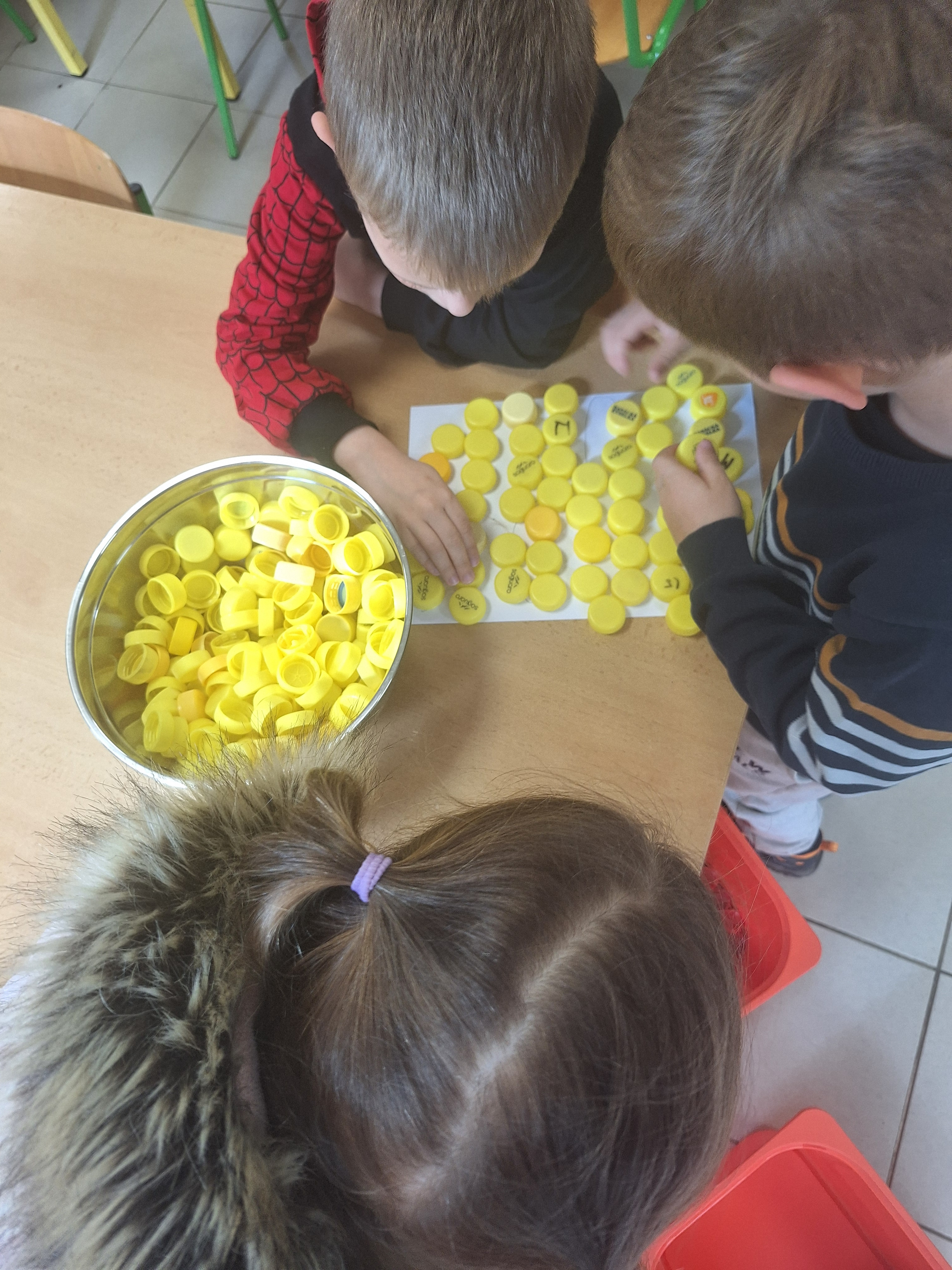 Na pěti stanovištích skládali různé obrazce podle předloh, které si sami vybrali. K dispozici měli pestrý materiál, například knoflíky, vršky od PET lahví či různé druhy luštěnin.