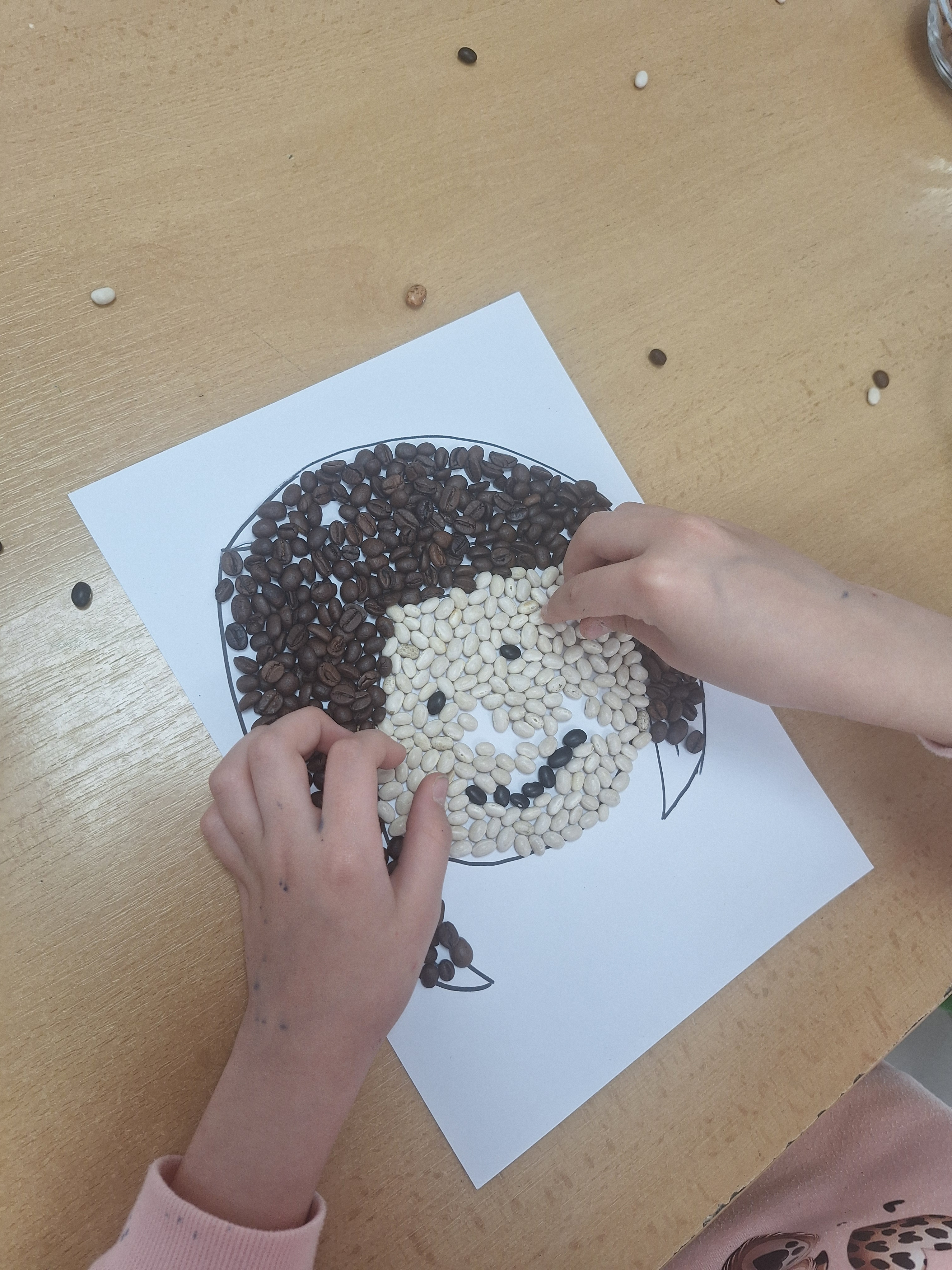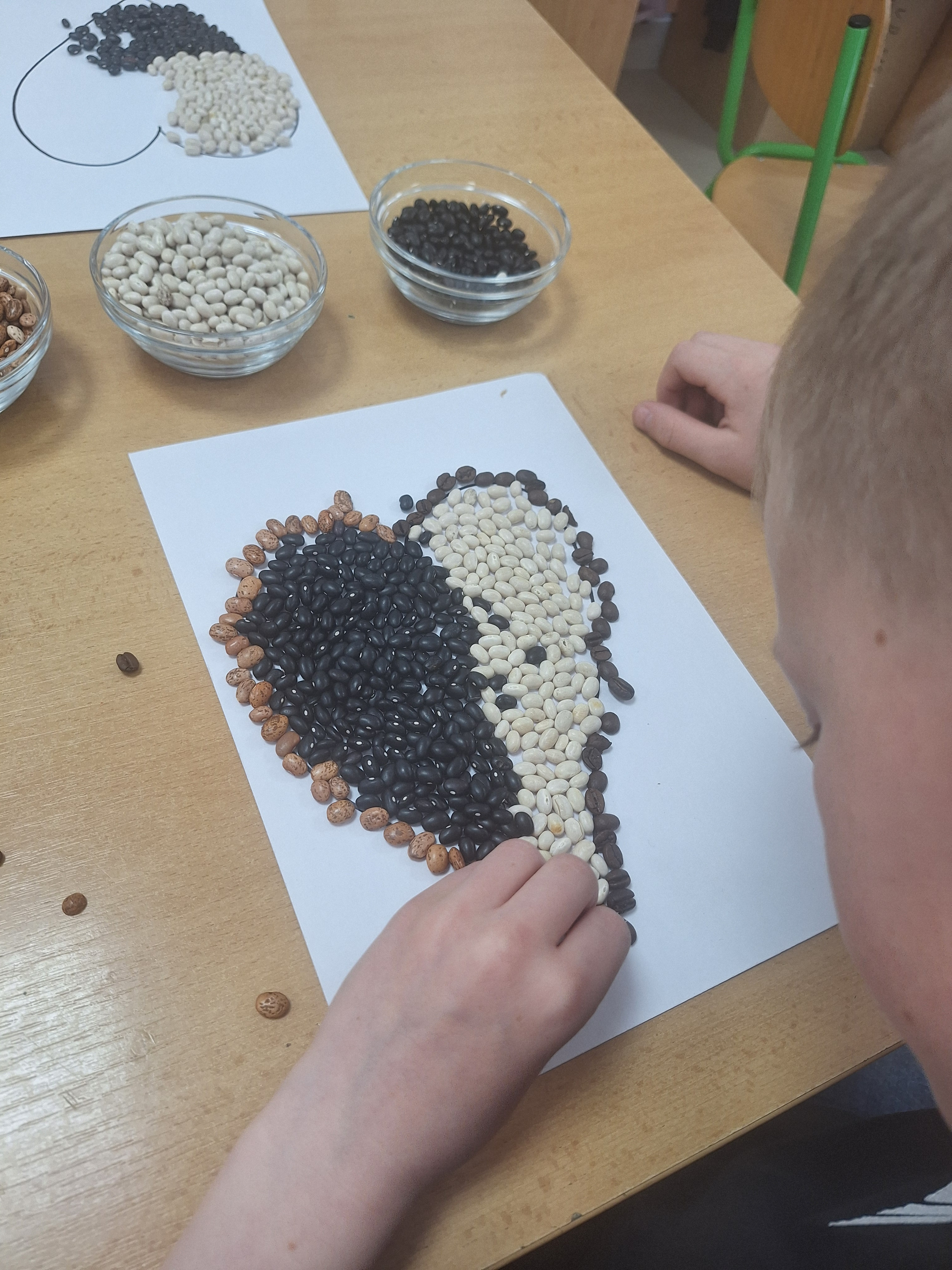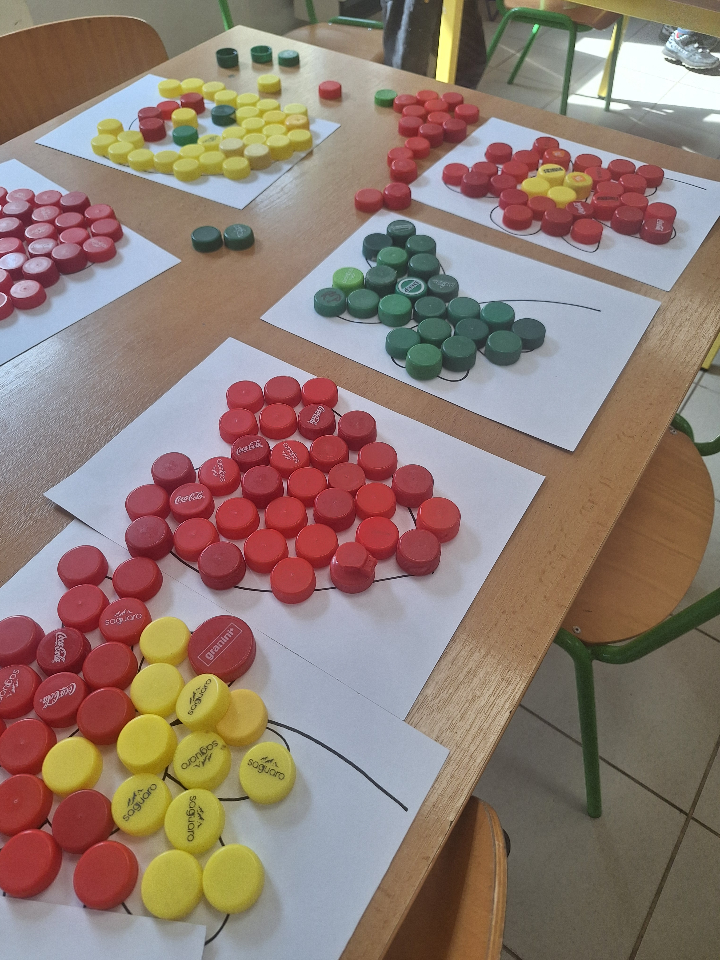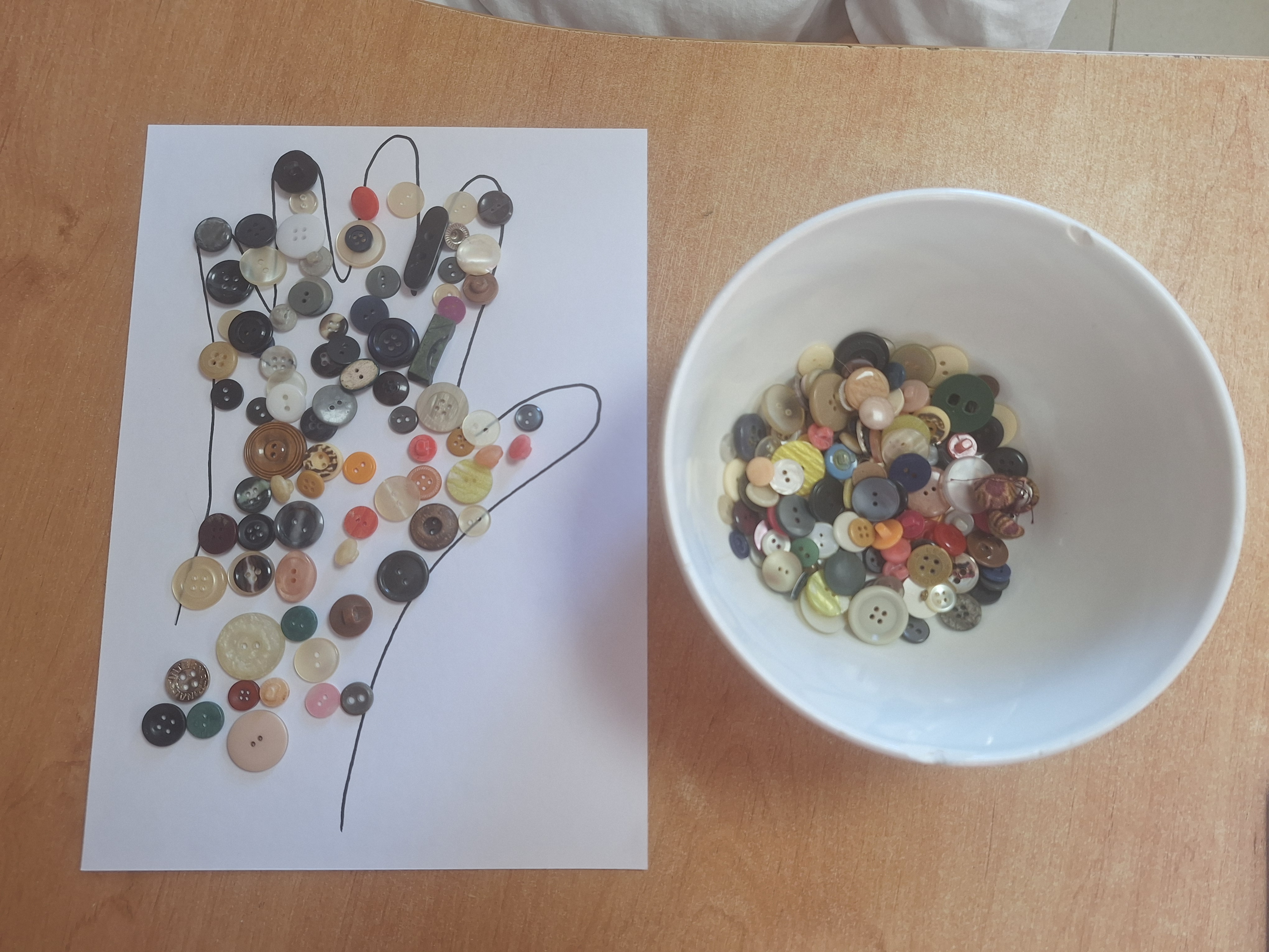 Na pěti stanovištích skládali různé obrazce podle předloh, které si sami vybrali. K dispozici měli pestrý materiál, například knoflíky, vršky od PET lahví či různé druhy luštěnin.