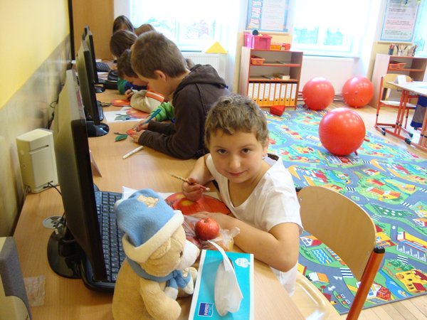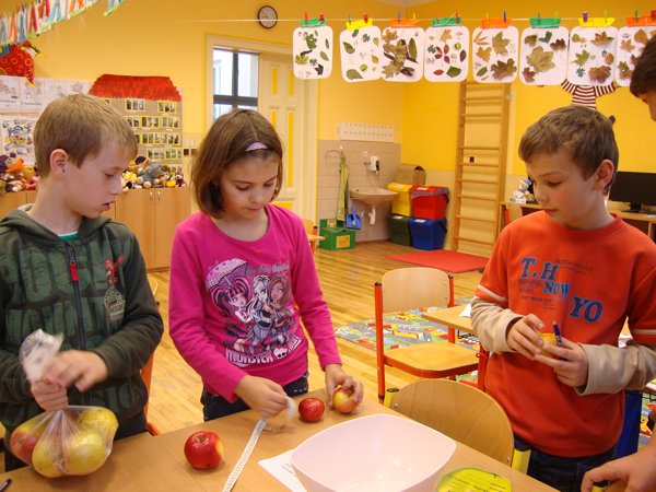 V úterý 5. listopadu se konal na naší škole již tradiční Jablíčkový den. Je to den ve znamení jablíček. Děti pracují ve věkově různorodých skupinkách a jablíčka měří, váží, získávají o nich různé informace, zpracovávají výtvarné práce s tematikou jablek a vyrábějí různé dobrůtky, které potom všichni společně snědí.