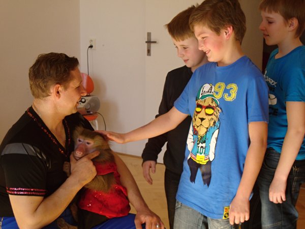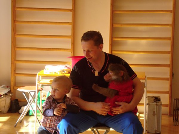 Přivezli s sebou i cvičenou opičku Žofku a dva pejsky, kteří nám předvedli, co umí. Zároveň jsme se dozvěděli, jak začíná den s opičkou Žofinkou a co má nejraději. Poučení a hlavně veselé vystoupení bylo odměnou pro všechny žáky naší školy i mateřinky. Všem se nám vystoupení moc líbilo.