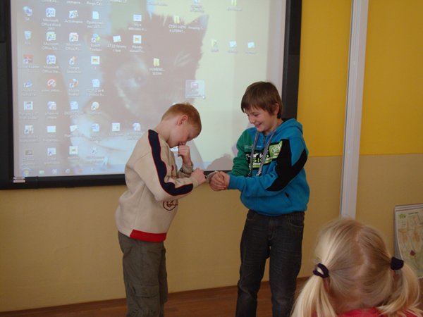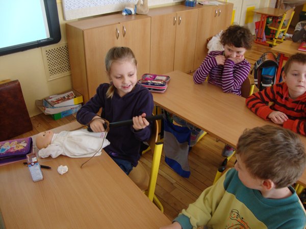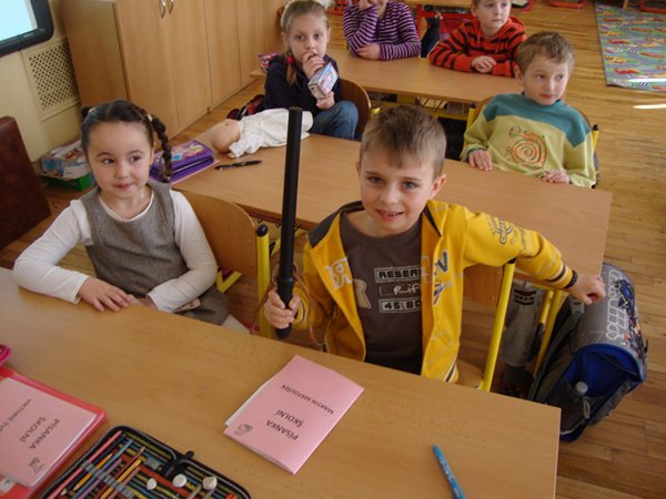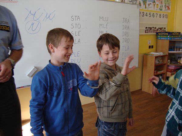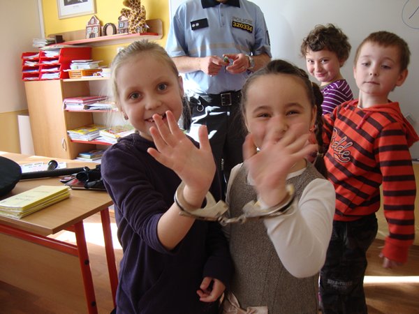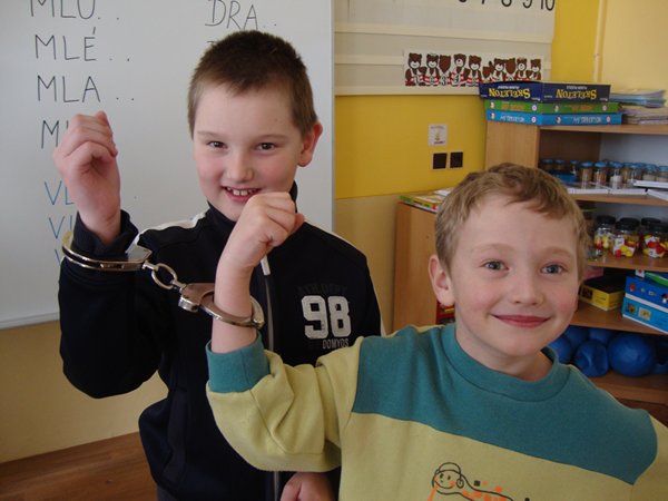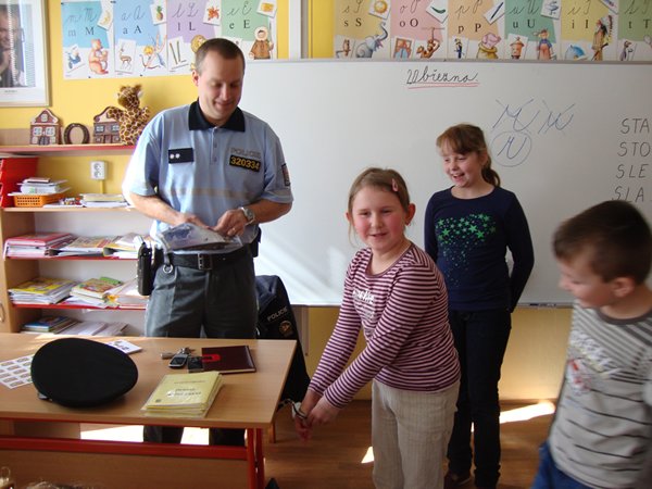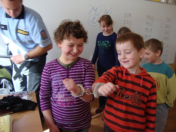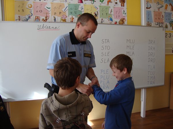 Oba programy však byly nejen poučné, ale i zábavné, zejména když měli žáci možnost vyzkoušet si obušek a pouta. Program se dětem velmi líbil.