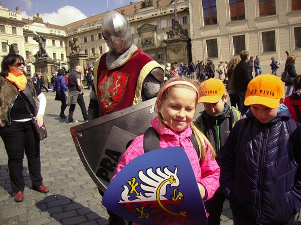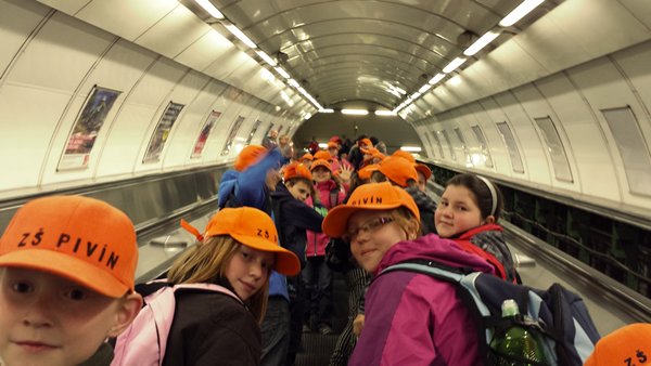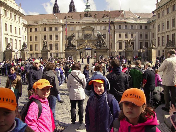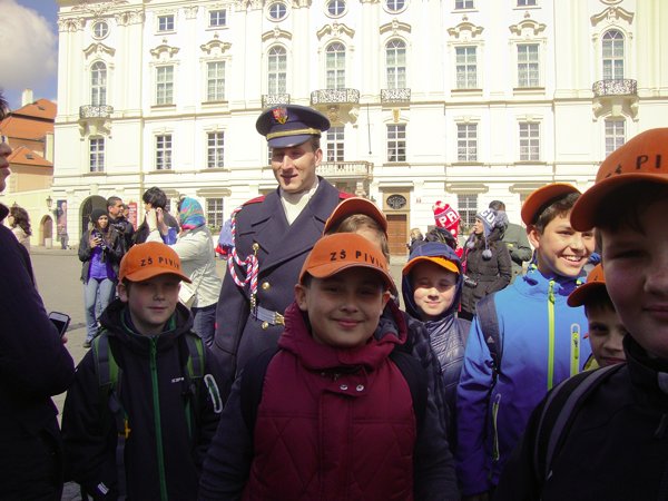 Do hlavního města jsme dorazili něco před desátou hodinou a hned nás čekal první zážitek – pražské metro. Na stanici Hradčanská jsme vystoupili a naše první cesta vedla na Pražský hrad a k chrámu svatého Víta, místu odpočinku českých králů. Prohlédli jsme si baziliku sv. Jiří a nakoukli do Zlaté uličky. U hlavní brány jsme sledovali slavnostní střídání hradních stráží. Od Hradu byla pěkná vyhlídka na Malou Stranu. Po Zámeckých schodech jsme sešli k Malostranskému náměstí s chrámem sv. Mikuláše. Naše další cesta vedla ke Karlovu mostu. Zastavili jsme se i u sochy sv. Jana Nepomuckého, protože většina z nás měla tajné přání a chtěla si ho zde položením dlaně na kříž potvrdit. Další cesta vedla směrem na Staroměstské náměstí k Staroměstské radnici s orlojem. Právě odbíjel celou hodinu, takže jsme mohli pozorovat pohyb dvanácti apoštolů. Naše cesta vedla dále k Prašné bráně a odtud jsme se vydali ulicí Na Příkopě na Václavské náměstí. V jeho horní části jsme si prohlédli budovu Národního muzea a sochu sv. Václava. Pomalým tempem jsme se vydali k hlavnímu nádraží a po čtvrté hodině jsme Praze zamávali a vydali se zpátky směrem na Pivín. Díky našemu výletu jsme však na vlastní oči viděli to, o čem se učíme v prvouce a ve vlastivědě. Zjistili jsme, že Praha je určitě jedním z nejkrásnějších měst na světě a rádi bychom se do ní někdy znovu podívali. Tak ahoj Praho, někdy příště.