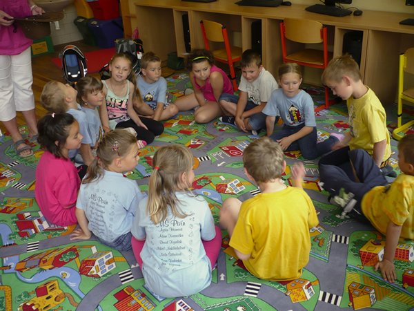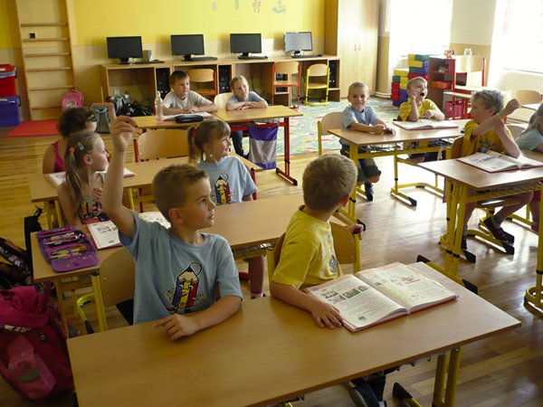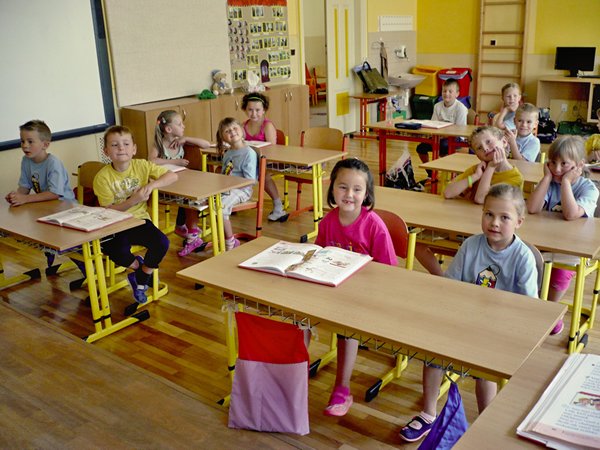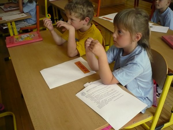 Jejich starší spolužáci se jim pochlubili, co už se za rok ve škole naučili. Připravili si pro ně čtení pohádky Hrnečku, vař a ukázali na tabuli, co už umí také napsat. Společně si zahráli hru „Otázky z klobouku“ a předvedli si navzájem, co umí zazpívat nebo zarecitovat. Na závěr dostali budoucí prvňáčci úkol na prázdniny a medaili „Jsem školák“.