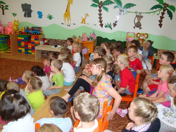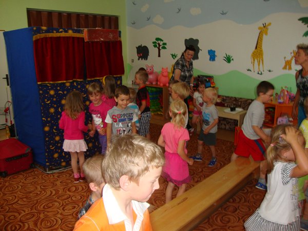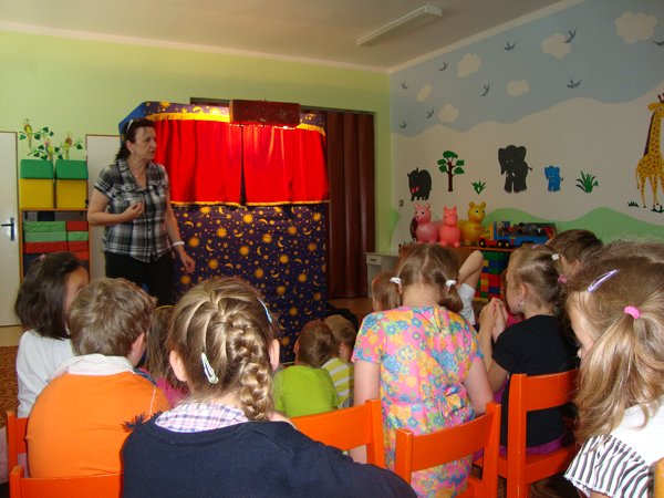 Od prvního poodhrnutí opony, gesta maňáska a mluveného slova seděly všechny děti jako pěny a bez dechu sledovaly děj. Spontánně se zapojovaly do příběhu, zpívaly, tleskaly, pohupovaly se do rytmu písniček. Moc se nám to líbilo!
