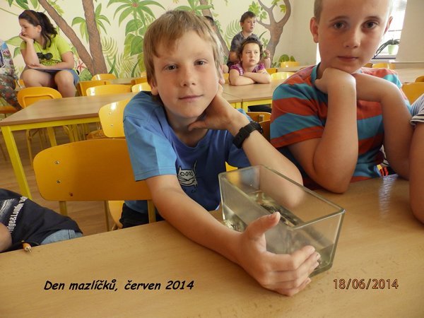 Ve středu 18. června se konal na naší škole Den mazlíčků a všichni žáci měli možnost přinést nebo přivést nám ukázat svého mazlíčka. Ukázalo se, že pod pojmem mazlíček si může každý z nás představit něco jiného.