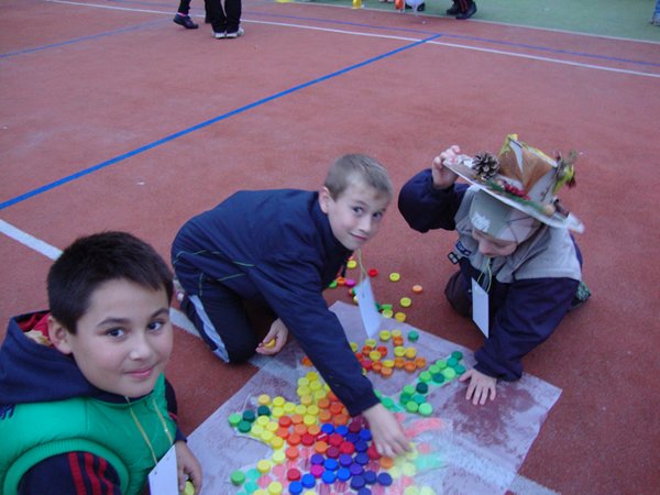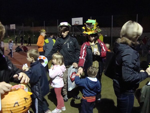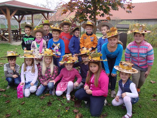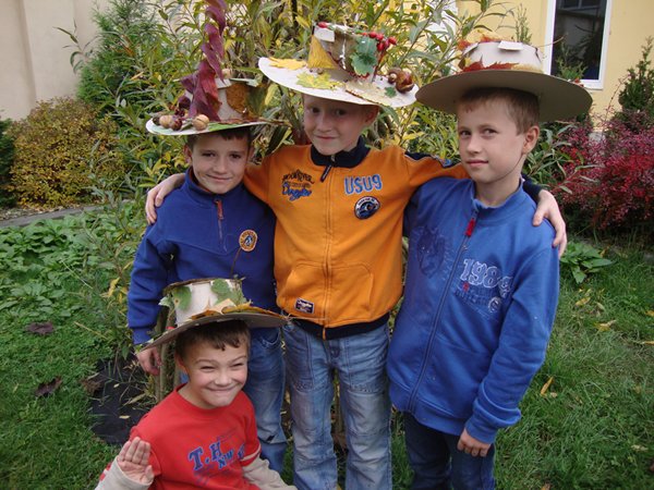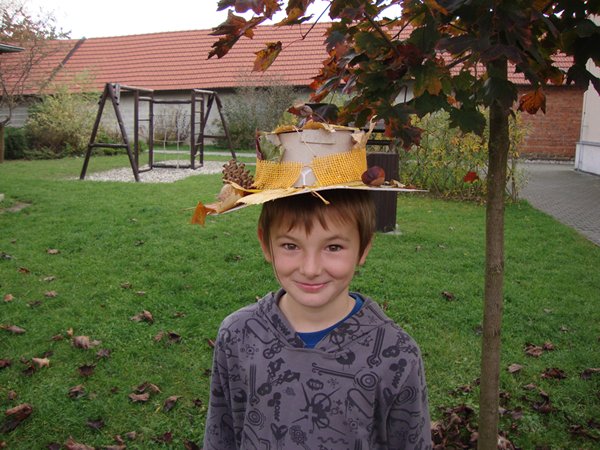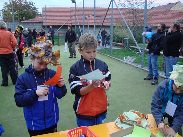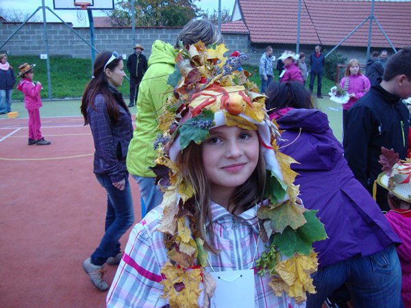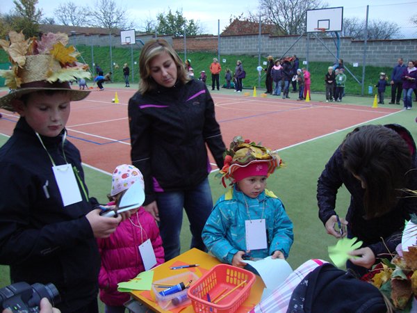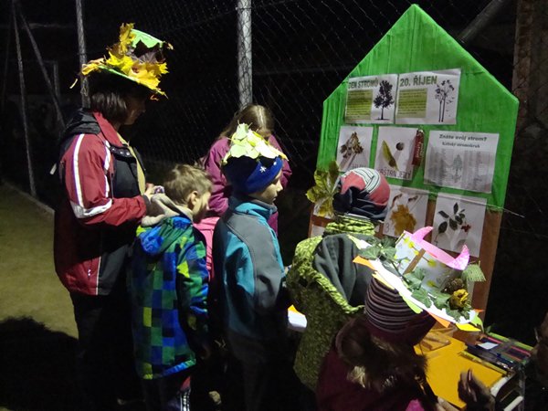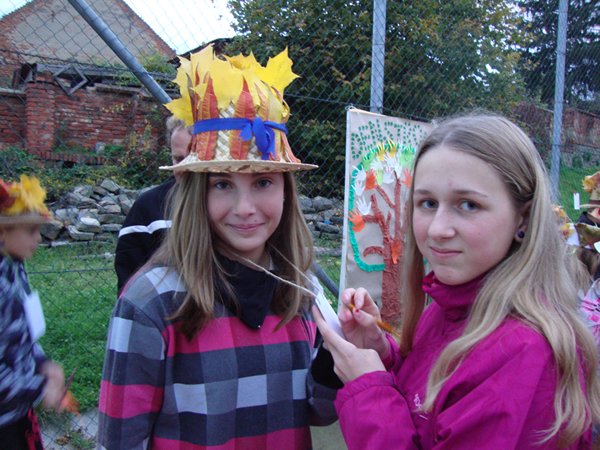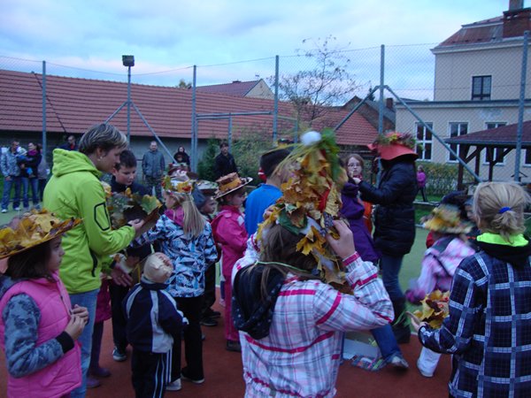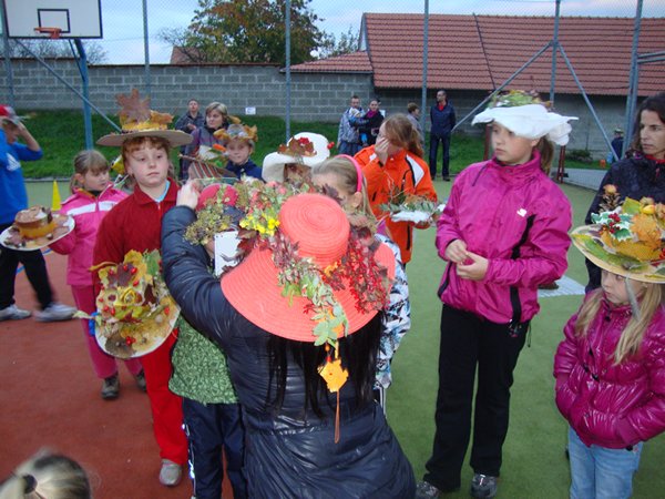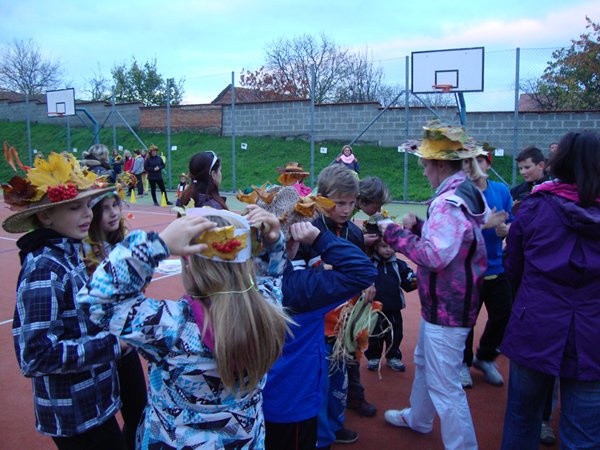 Páteční podvečer byl ovšem jen vyvrcholením dvoutýdenních aktivit věnovaných stromům. V hodinách výtvarné výchovy a pracovních činností vytvořili žáci z padajícího listí krásné práce, z kterých jsme na hřišti uspořádali výstavu pod širým nebem. Žáci si vyrobili krásné kloboučky, v prvouce si zopakovali poznávání stromů, svůj strom si určili také podle keltského kalendáře a v hudební výchově si o stromech zazpívali. Vstupenkou na tuto akci byl klobouk či jiná pokrývka hlavy ozdobená listím. Sešla se asi osmdesátka lidí a potěšilo nás, že i většina rodičů přišla s předepsanou pokrývkou hlavy. Odměnit deset nejoriginálnějších bylo docela těžké. Na hřišti měly děti připraveno jedenáct soutěží. Za jejich splnění dostaly párek v rohlíku, čaj a sladkou odměnu. Na velkém papírovém stromě většina účastníků také zanechala svoji stopu – papírovou dlaň, na níž napsala své přání stromům. Závěrečnou tečku obstaral lampionový průvod večerním parkem. Počasí nám přálo a tak se nám celá akce hezky vydařila. Poděkování patří všem, kteří se na přípravě podíleli a samozřejmě i těm, kteří k nám do školy přišli. Oslavencům stromům přejeme klidné a čisté prostředí, tolerantní obdivovatele i dostatek energie, kterou nám pak mnoha různými způsoby zase rozdávají.