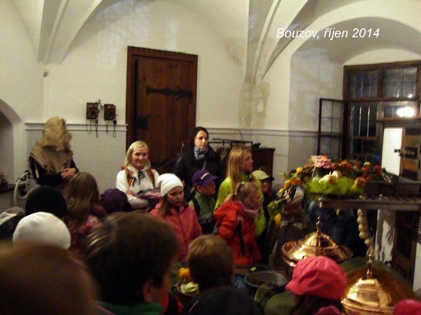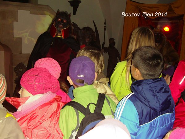 Na cestě hradem jsme potkali čarodějnici, která připravovala své lektvary, bezhlavého rytíře, vodníka, černou a bílou dámu, paní z obrazu, která čekala na své vysvobození, upíra, kostlivce, dva bláznivé vědce, kteří nás vystrašili velkým pavoukem. Na závěr jsme navštívili peklo s čertem a jeho pomocníky. Nezvykle pojatá hradní prohlídka se nám moc líbila a báli jsme se jen maličko.