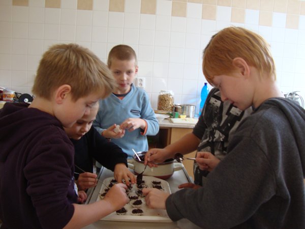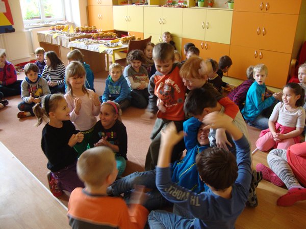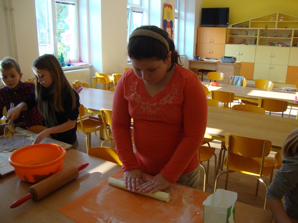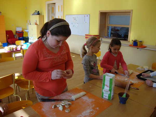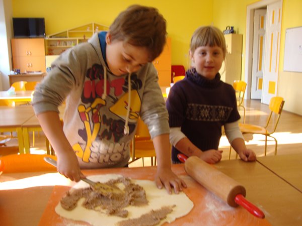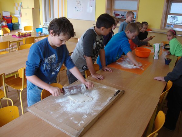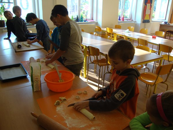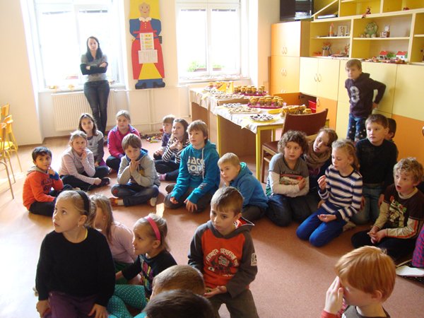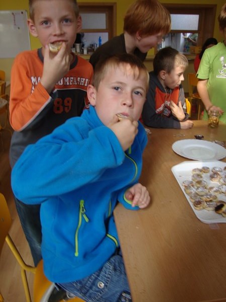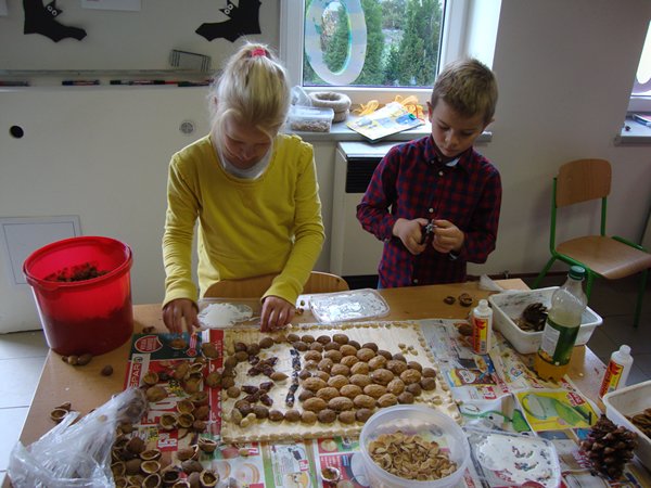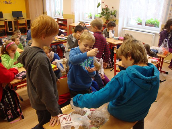 Na 1. stanovišti se děti učily poznávat jednotlivé druhy ořechů a dozvěděly se, jaký mají význam pro člověka. Na 2. stanovišti v tělocvičně využily ořechy jako cvičební pomůcku, na 3. stanovišti vyráběly z ořechů pěkné obrázky a na 4. stanovišti si upekly ořechové šneky a vyrobily čokoládové hrudky s oříšky a mandlemi. Všechno jsme na závěr společně snědli, nezůstalo vůbec nic.
