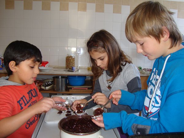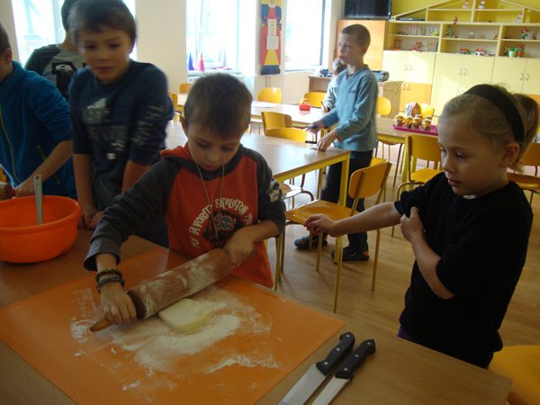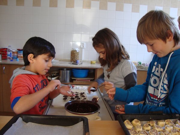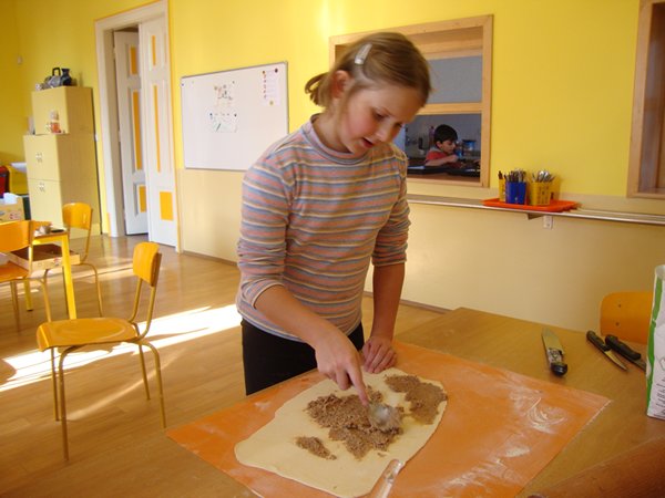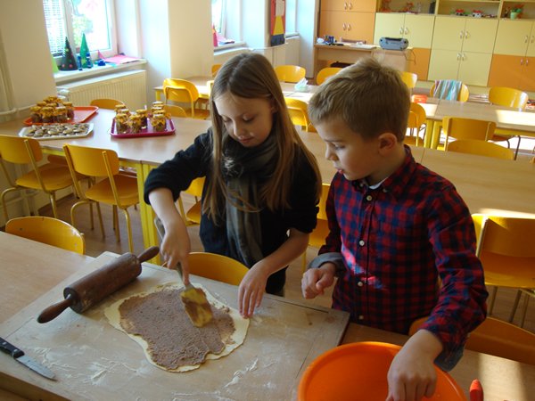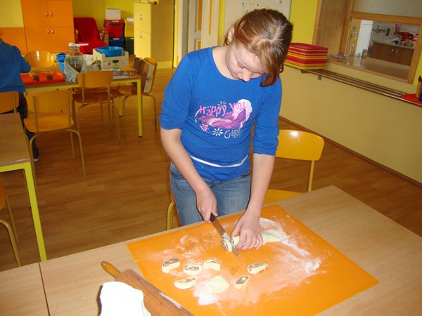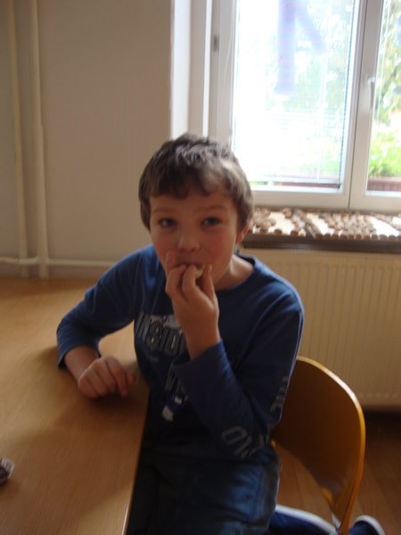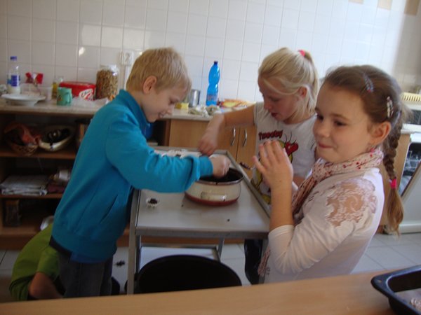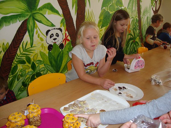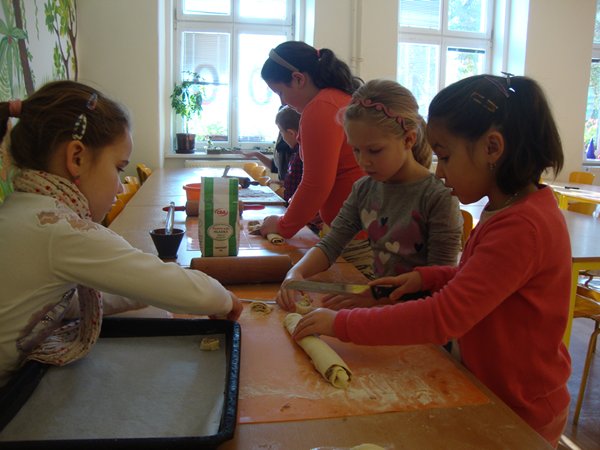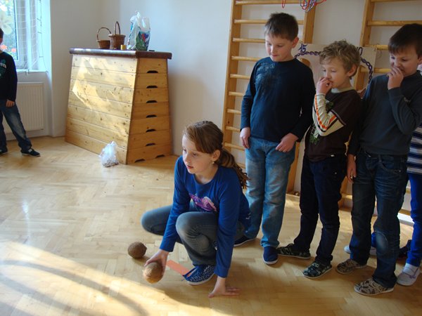 Na 1. stanovišti se děti učily poznávat jednotlivé druhy ořechů a dozvěděly se, jaký mají význam pro člověka. Na 2. stanovišti v tělocvičně využily ořechy jako cvičební pomůcku, na 3. stanovišti vyráběly z ořechů pěkné obrázky a na 4. stanovišti si upekly ořechové šneky a vyrobily čokoládové hrudky s oříšky a mandlemi. Všechno jsme na závěr společně snědli, nezůstalo vůbec nic.