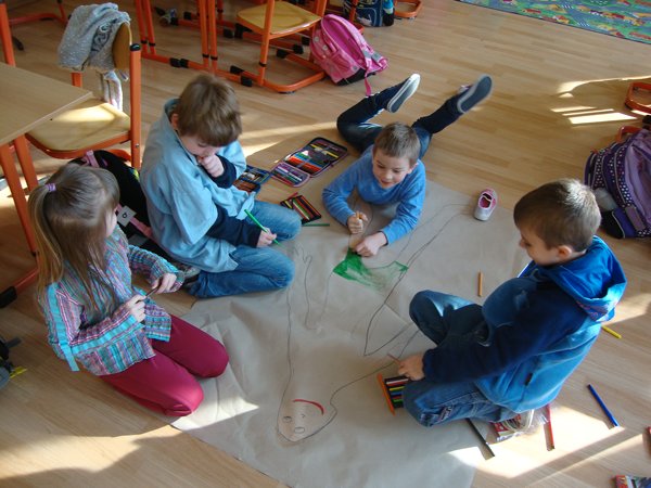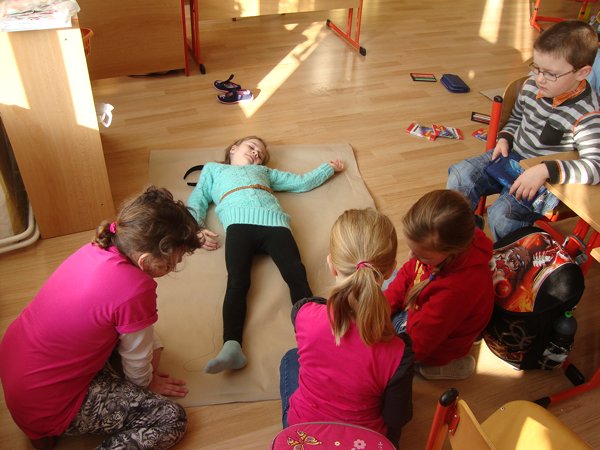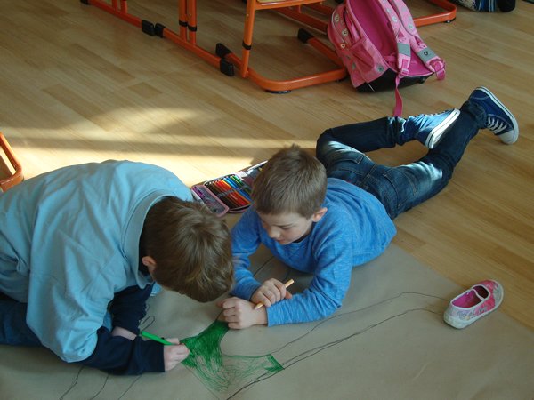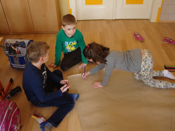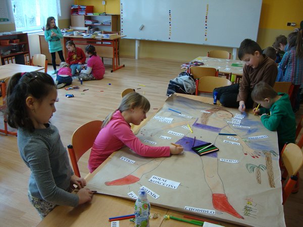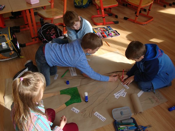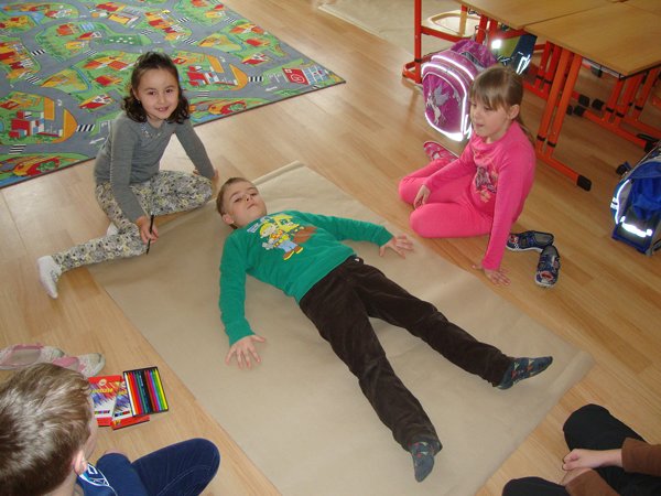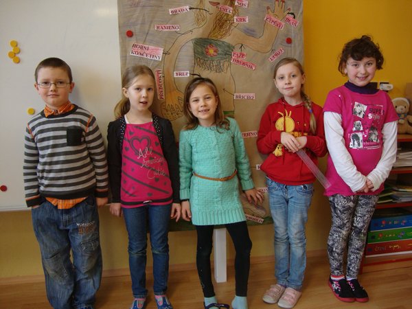 V pondělí 16. března 2015 si žáci 1. a 2. ročníku v rámci projektového dne zopakovali svoje znalosti o našem těle, které získali v hodinách prvouky. Ve skupinkách vytvářeli plakát lidského těla. Vybrali si jednoho člena, obkreslili tvar jeho těla na plakát a pojmenovávali jednotlivé části těla.