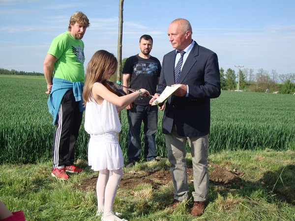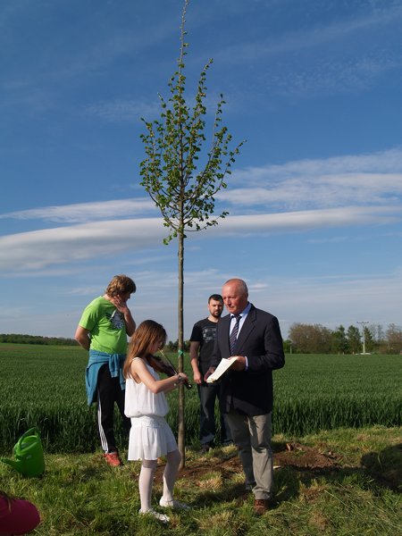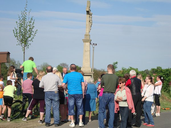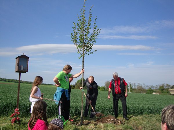 Potom se průvod vydal za vesnici, kde u Bílého kříže zasadili členové Divadelní společnosti Větřák pamětní lípu