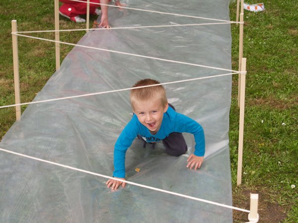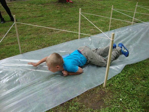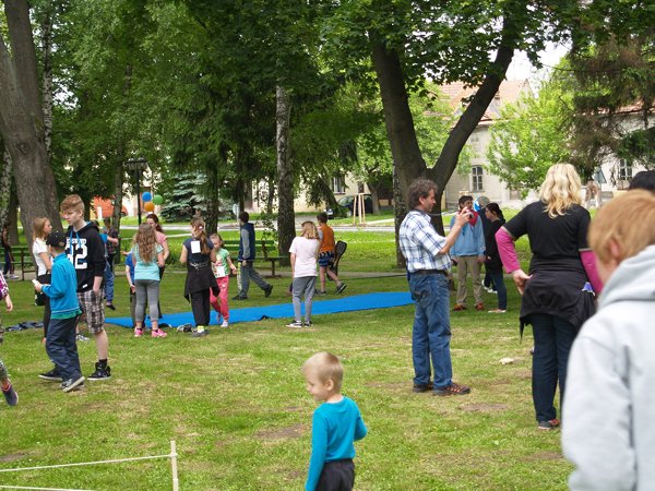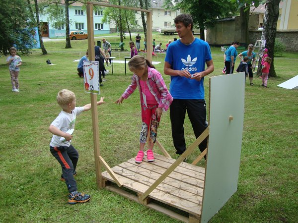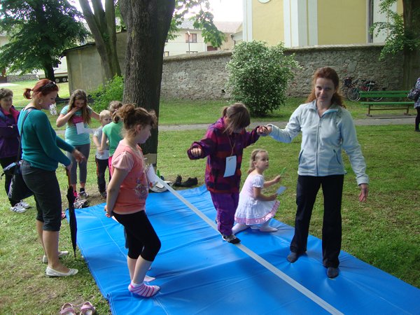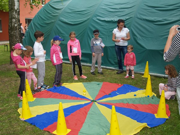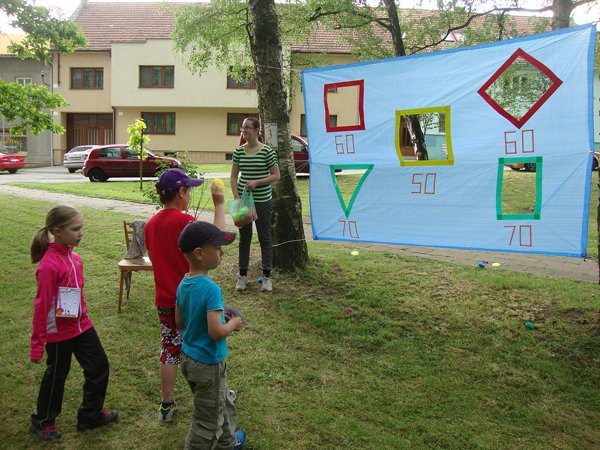 Součástí oslav byl bohatý doprovodný program s řadou zajímavých soutěží – střelba ze vzduchovky, běh v ploutvích, hod míčkem na plechovky, minigolf, chůze po laně – slackline, lyže, hod míčkem na cíl, na žebřík, na býka, do padákové plachty a na koš, plazení v lanové dráze a další. Za splněné soutěže si mohly děti vybírat odměny v obchůdku. Děkujeme všem našim sponzorům, kteří přispěli na nákup těchto odměn. Děkujeme také všem rodičům, kteří se podíleli na přípravě jednotlivých soutěží a pomáhali s občerstvením a úklidem. Děkujeme i našemu zřizovateli – Obci Pivín za zajištění exhibice a trampolíny. Akce to byla velmi zdařilá a nepokazil ji ani silný liják.